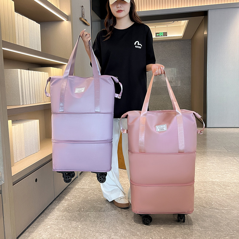 📚 带轮子的行李袋轻便大容量超大可携式收纳可折叠旅行包万向轮滑轮