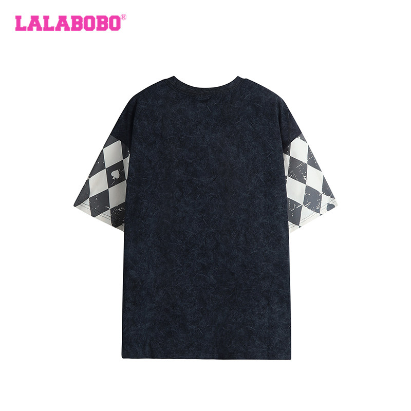 📚 LALABOBO24年夏季T恤女短袖新款拼色别致原创独特上衣LBDC-WSDT17