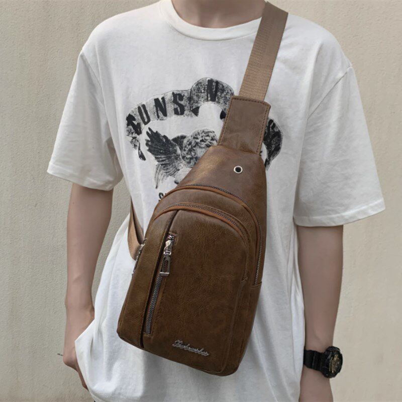 📚 JA13斜挎包男新款休闲PU大容量通勤小挎包女背包日系单肩胸包潮