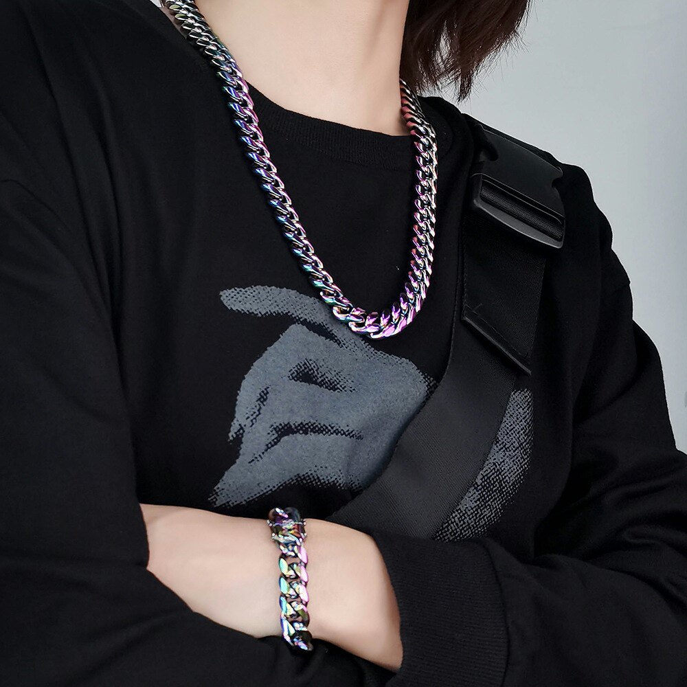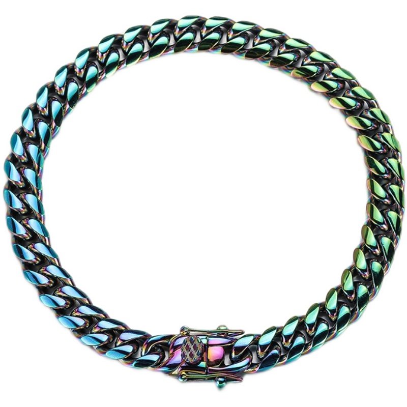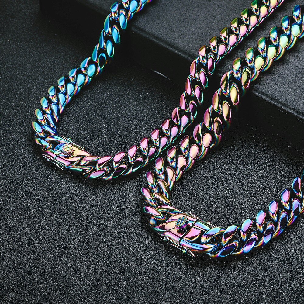 📚 欧美七彩男女淬火钛钢质感古巴项链彩色炫彩嘻哈时尚HipHop古巴链