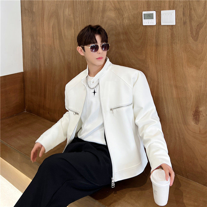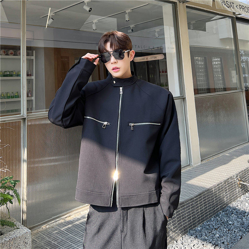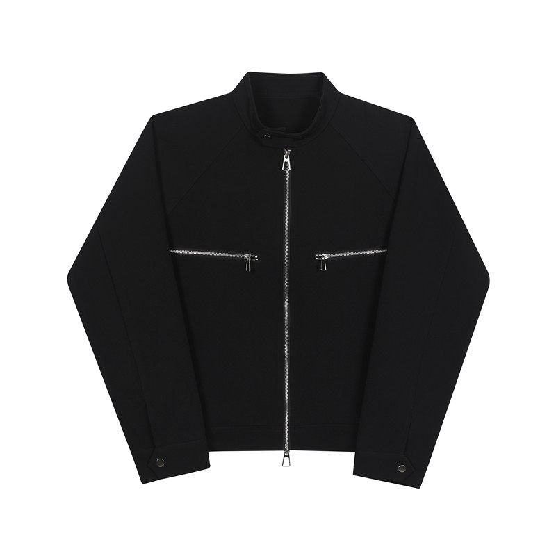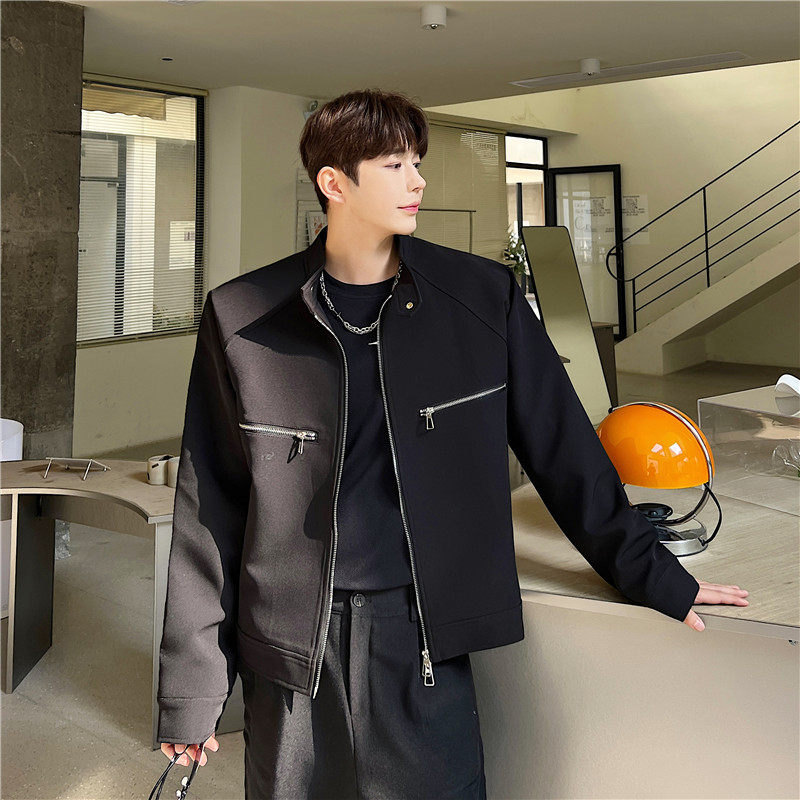 📚 春夏个性双开拉链设计小立领夹克外套男韩版短款垫肩上衣高级感潮