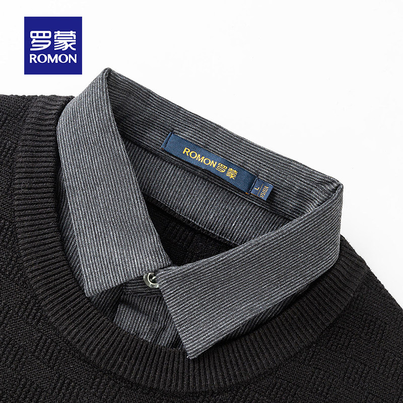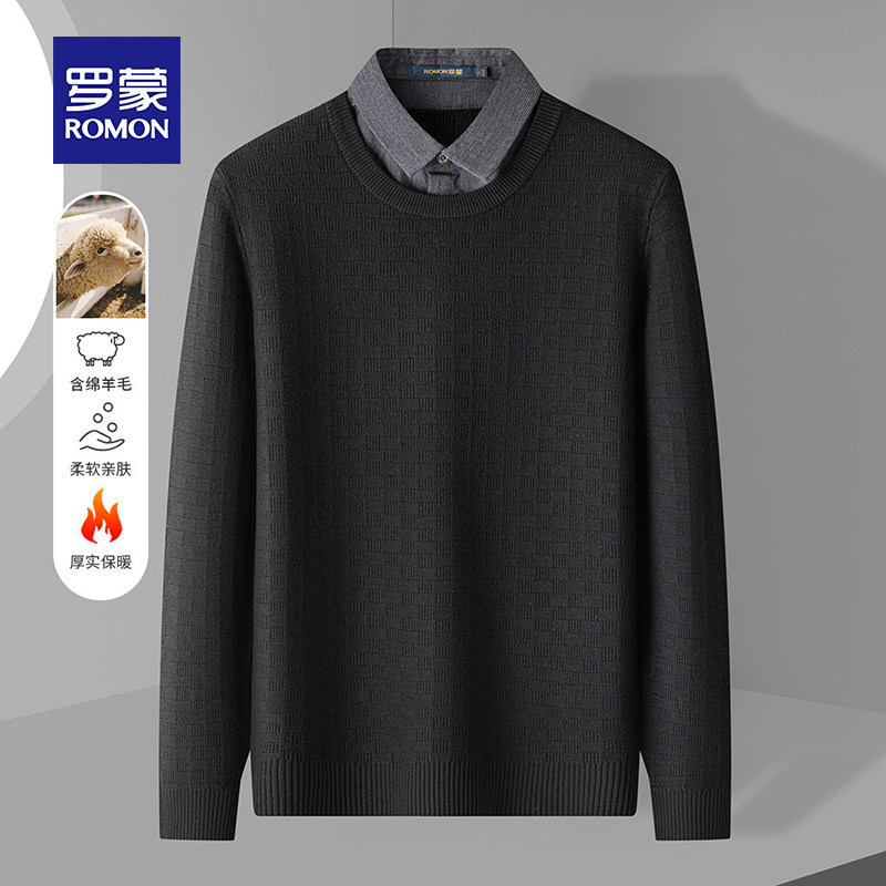📚 罗蒙假两件针织衫男衬衫领秋冬季2025新款中年爸爸秋装保暖毛衣