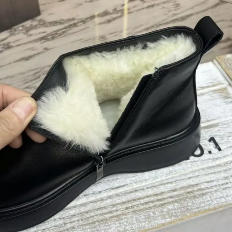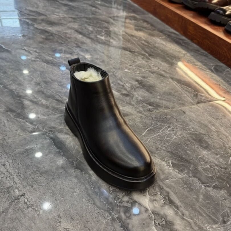 📚 冬季真皮棉皮鞋马丁靴男款羊皮毛一体加绒加厚保暖切尔西短靴子潮