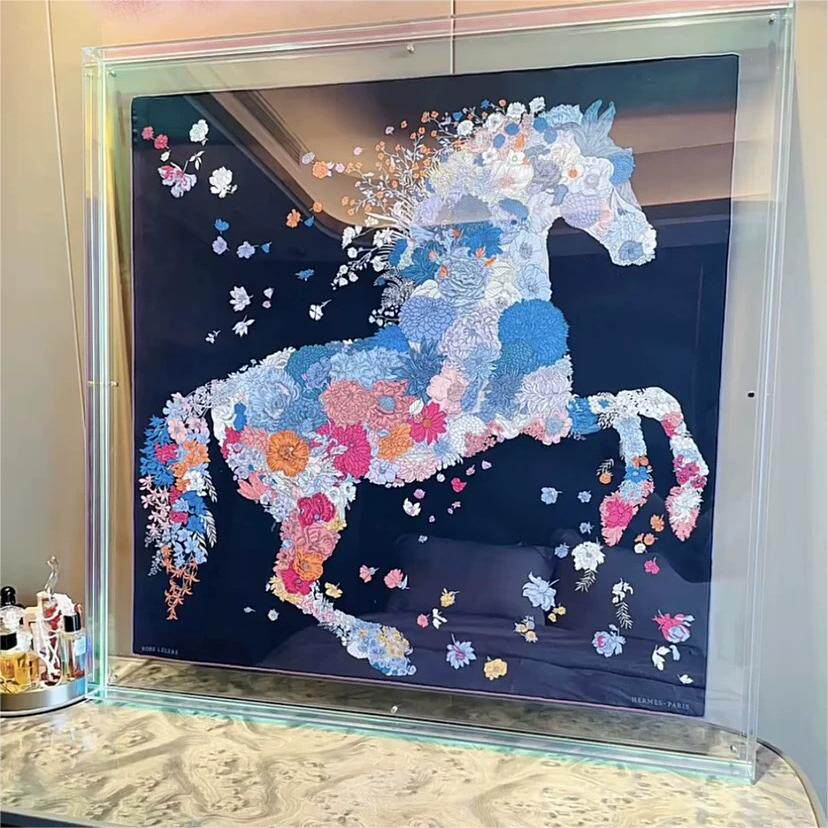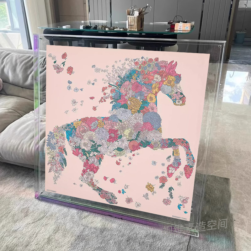📚 高端丝巾挂画亚克力透明画框装裱装饰画客厅沙发玄关屋顶飞马壁画
