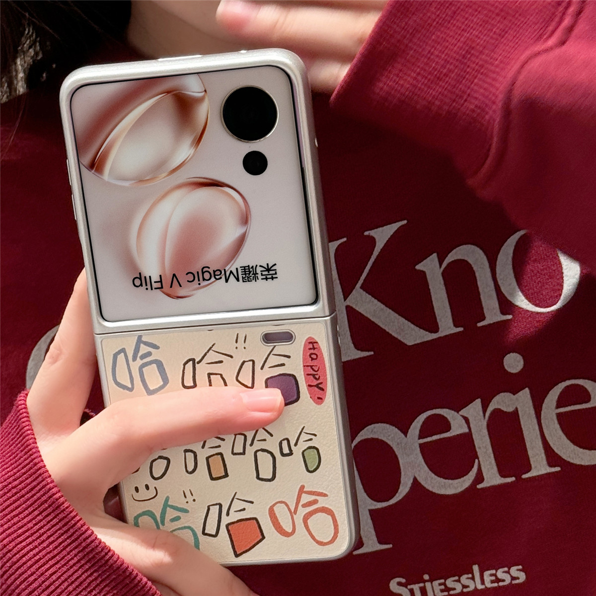 📚 彩色文字哈哈哈适用小米mixflip手机壳折叠屏MIXFlip保护套OPPON3Flip全包防摔华为Pocket2电镀小羊皮zflip5
