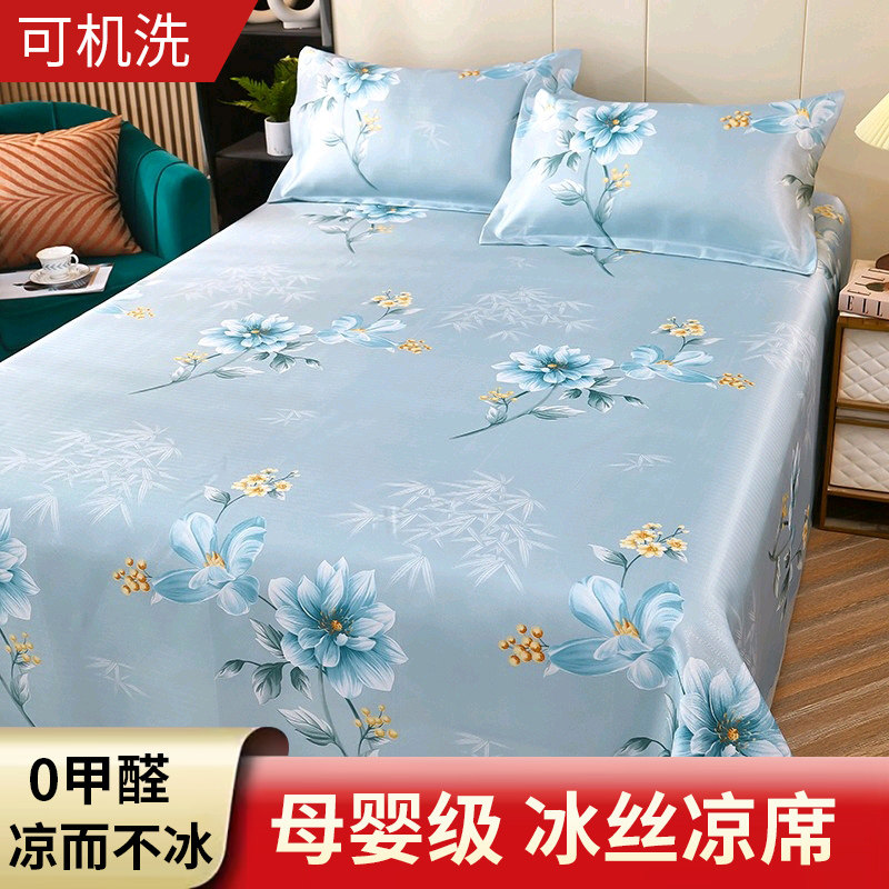 📚 2023新款冰丝凉席三件套夏季可机洗折叠家用1.5米1.8床上空调席子