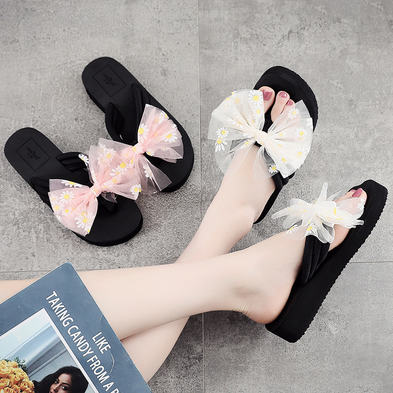 📚 拖鞋女外穿2025新款夏季坡跟厚底花朵沙滩凉拖时尚网红潮人字拖鞋