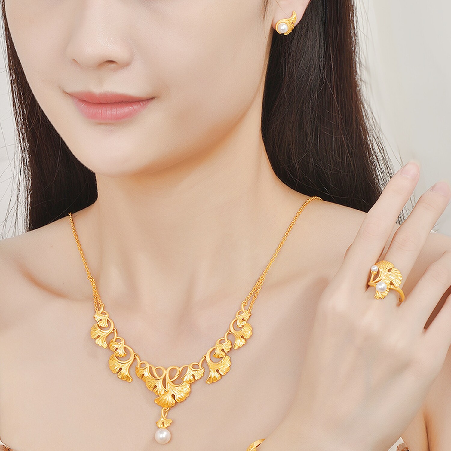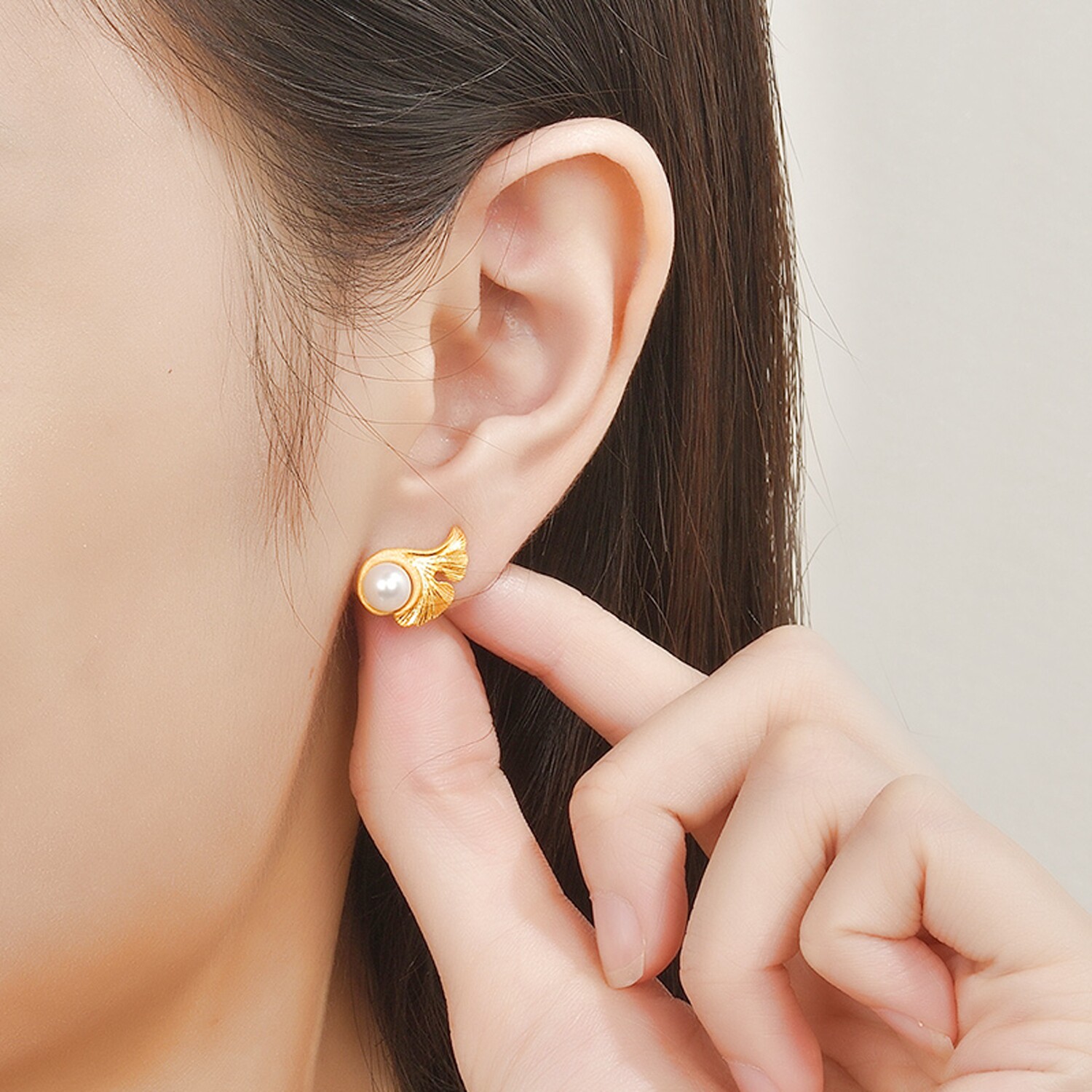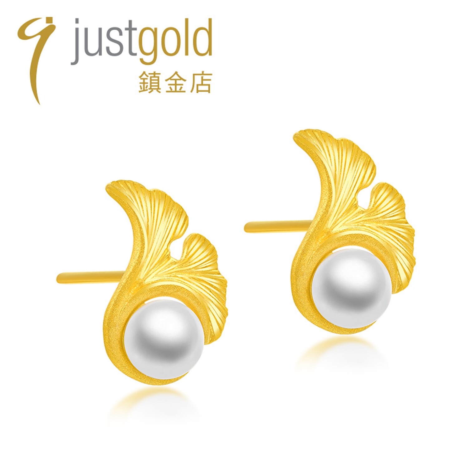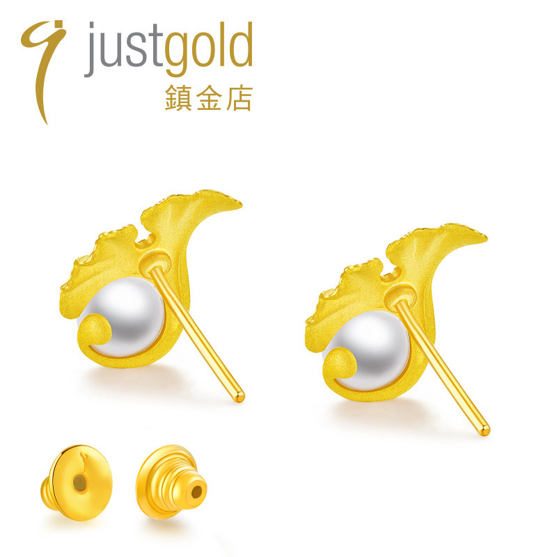 📚 justgold镇金店银杏情怀黄金足金耳钉耳环耳钩(含耳堵)1322831Y