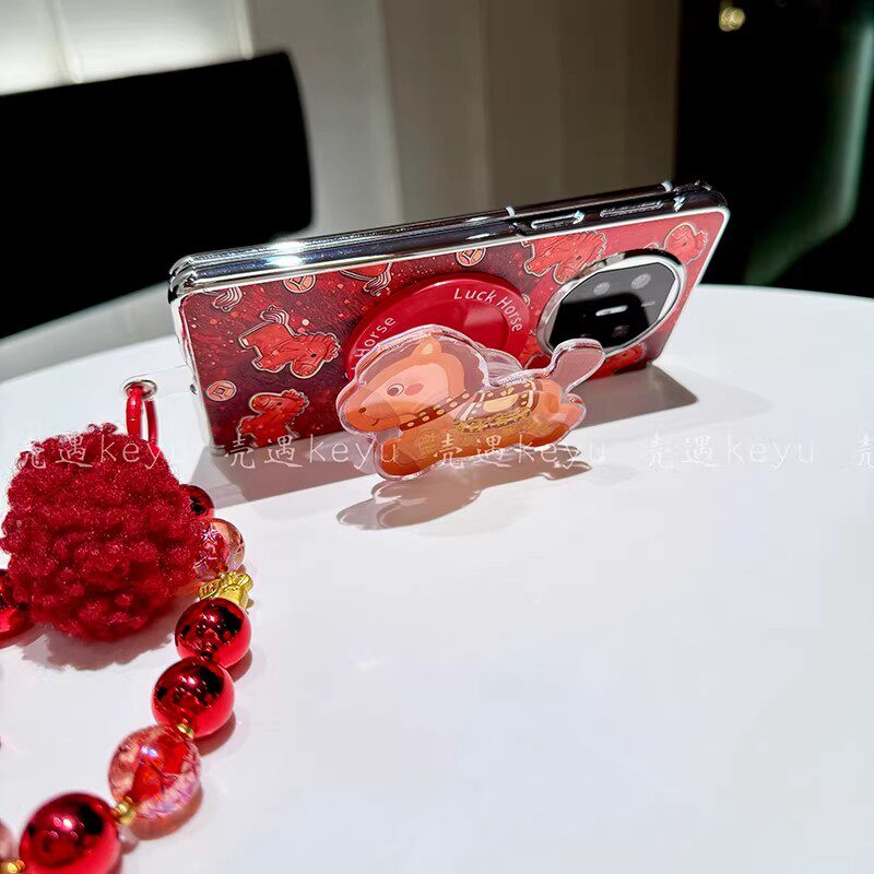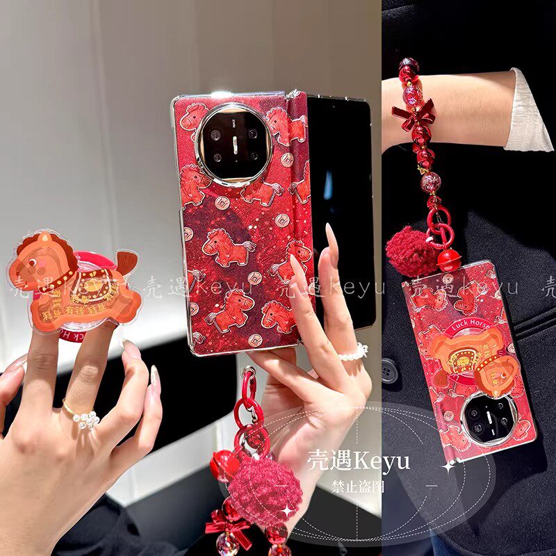 📚 新年红色马年磁吸支架适用华为matex7手机壳折叠屏电镀新款matax6典藏版metex5套中轴保护皮纹metax3挂绳女款