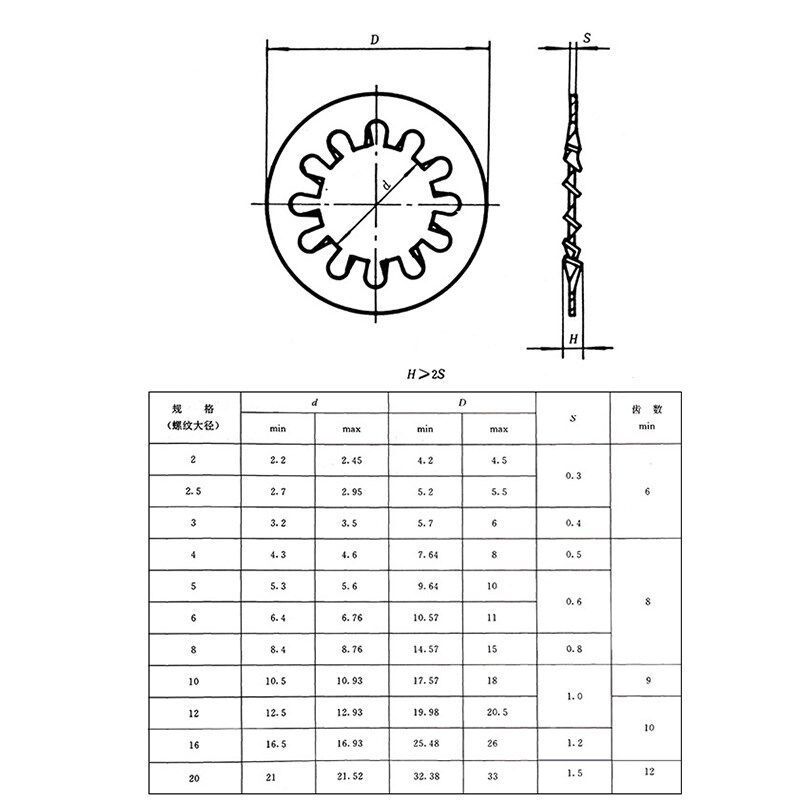 📚 普贤 304不h锈钢内齿锁紧垫圈DIN6797J弹簧钢多齿锁紧金属垫片垫