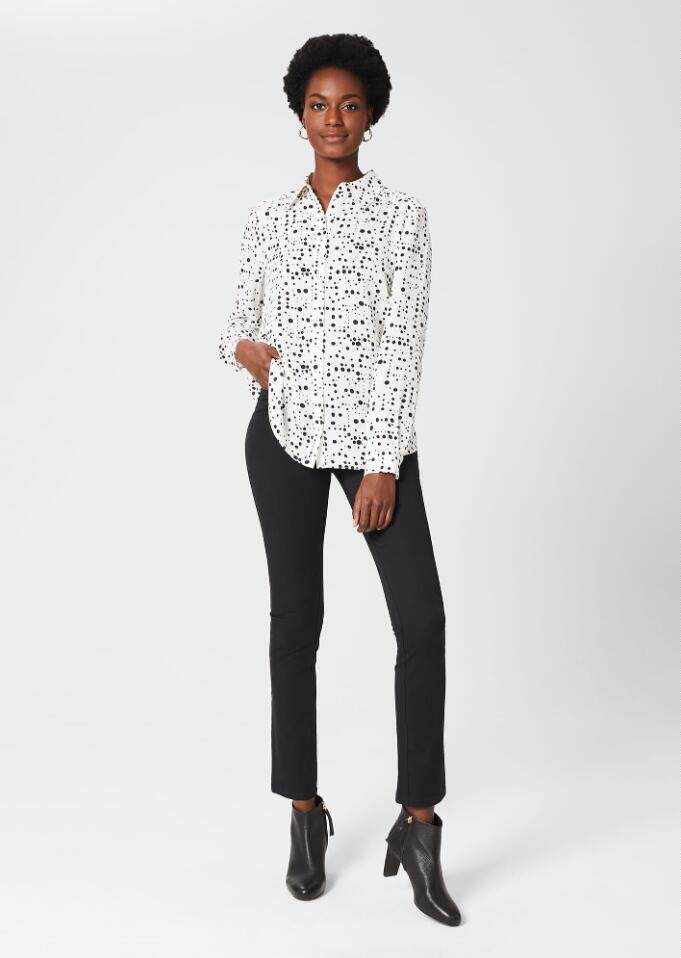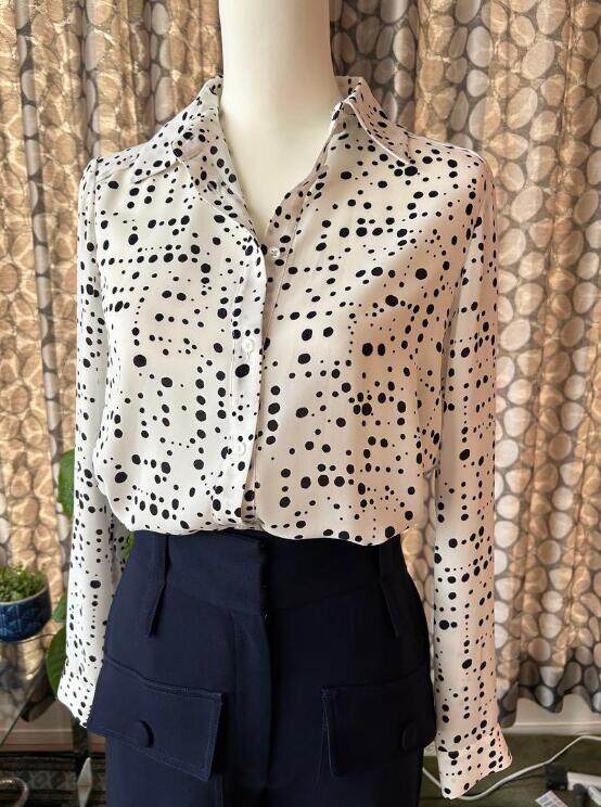 📚 HOBBS白色波点衬衫衬衣直筒简约淑女英伦风通勤休闲百搭