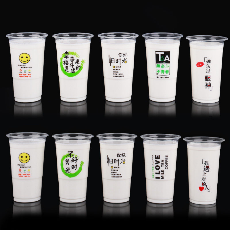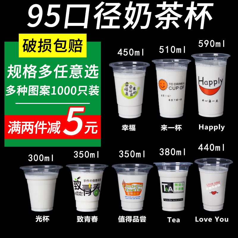 📚 95口径一次性透明奶茶杯带盖一次奶茶杯子塑料杯商用饮料豆浆光杯