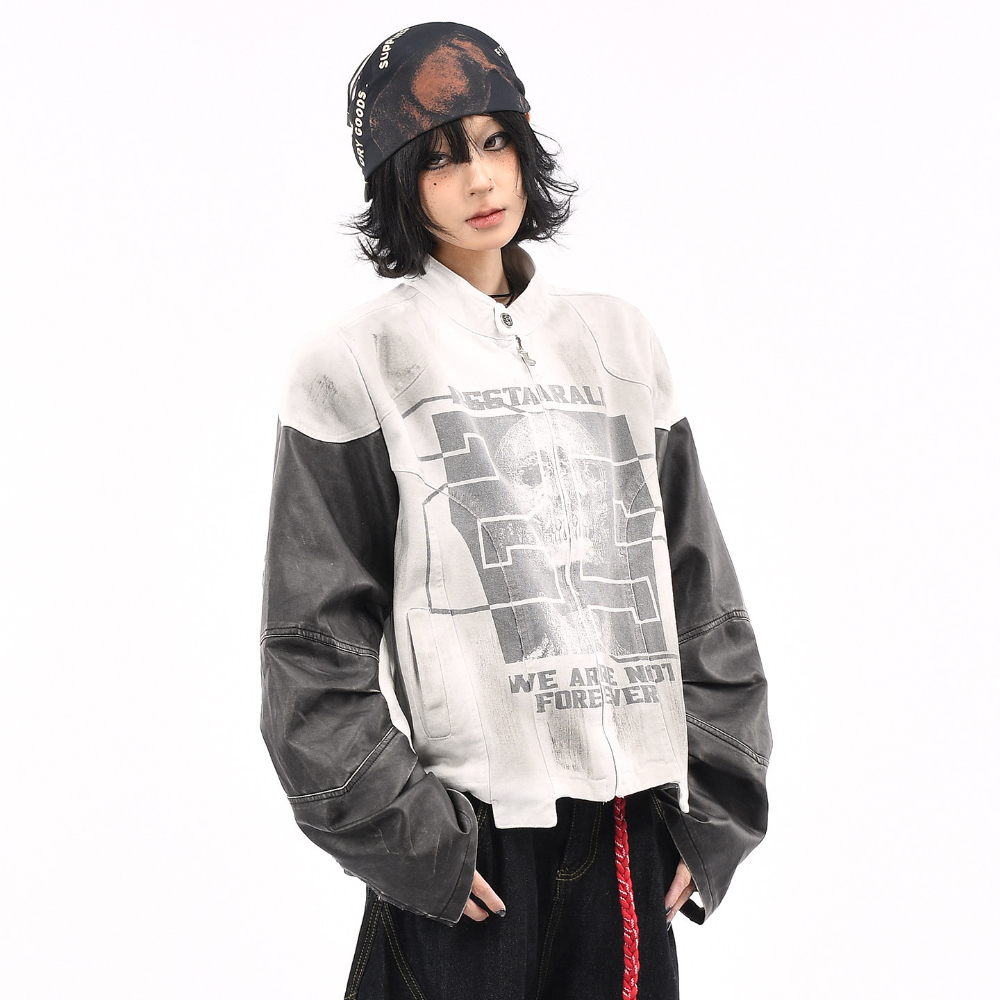 🔥OV原创美式复古骷髅印花机车赛车服外套,秋季新宠!券后价201元,让你爱不释手!