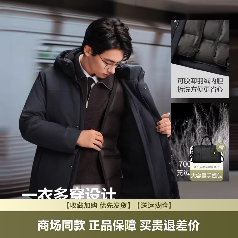 📚 波司登2025新款羽绒服男士商务挺括高蓬品质鹅绒可拆卸帽短款外套