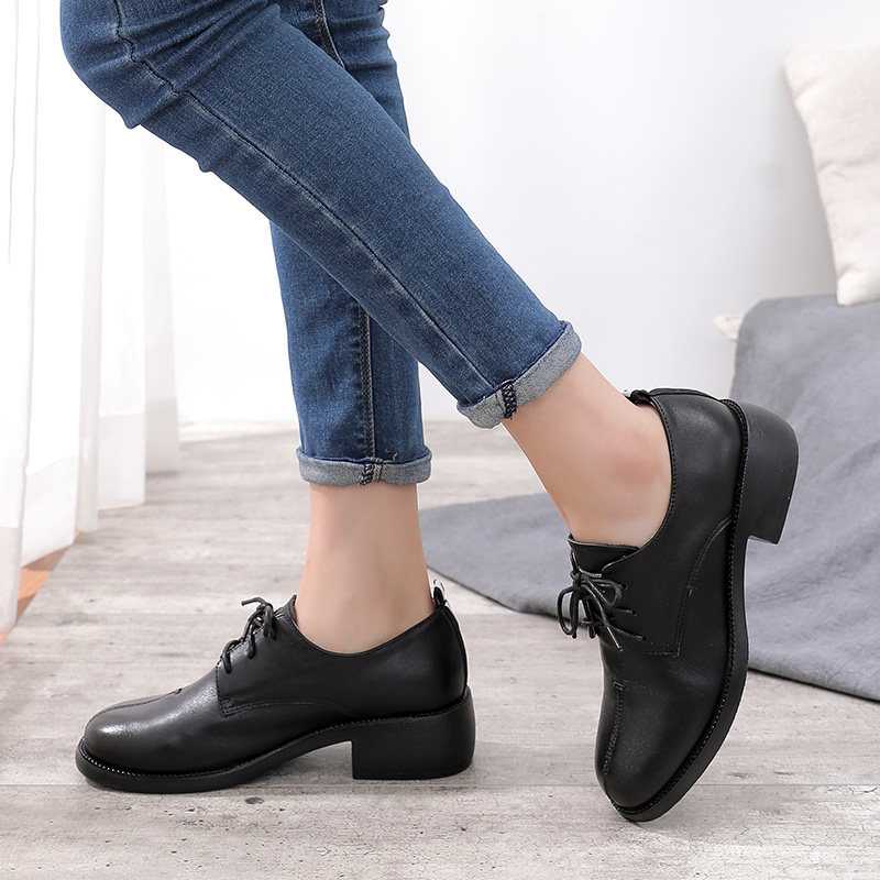 📚 英伦黑色小皮鞋2026春新款女复古软底中粗跟深口单鞋学院风工作鞋