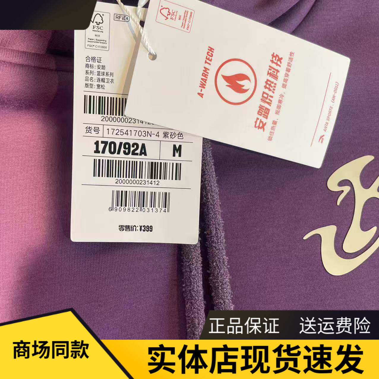 📚 安踏凯里·欧文系列美式运动连帽套头加绒卫衣休闲上衣172541703N