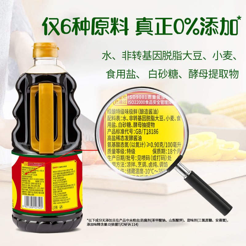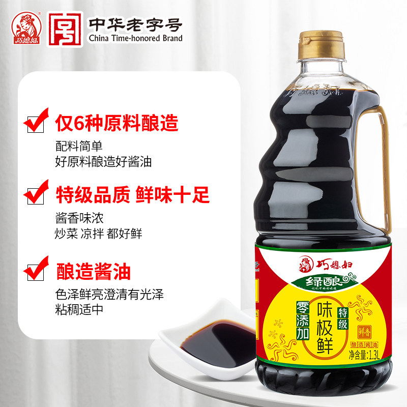 📚 巧媳妇绿酿零添加特级味极鲜酱油炒菜凉拌卤炖家用生抽1.3L瓶装