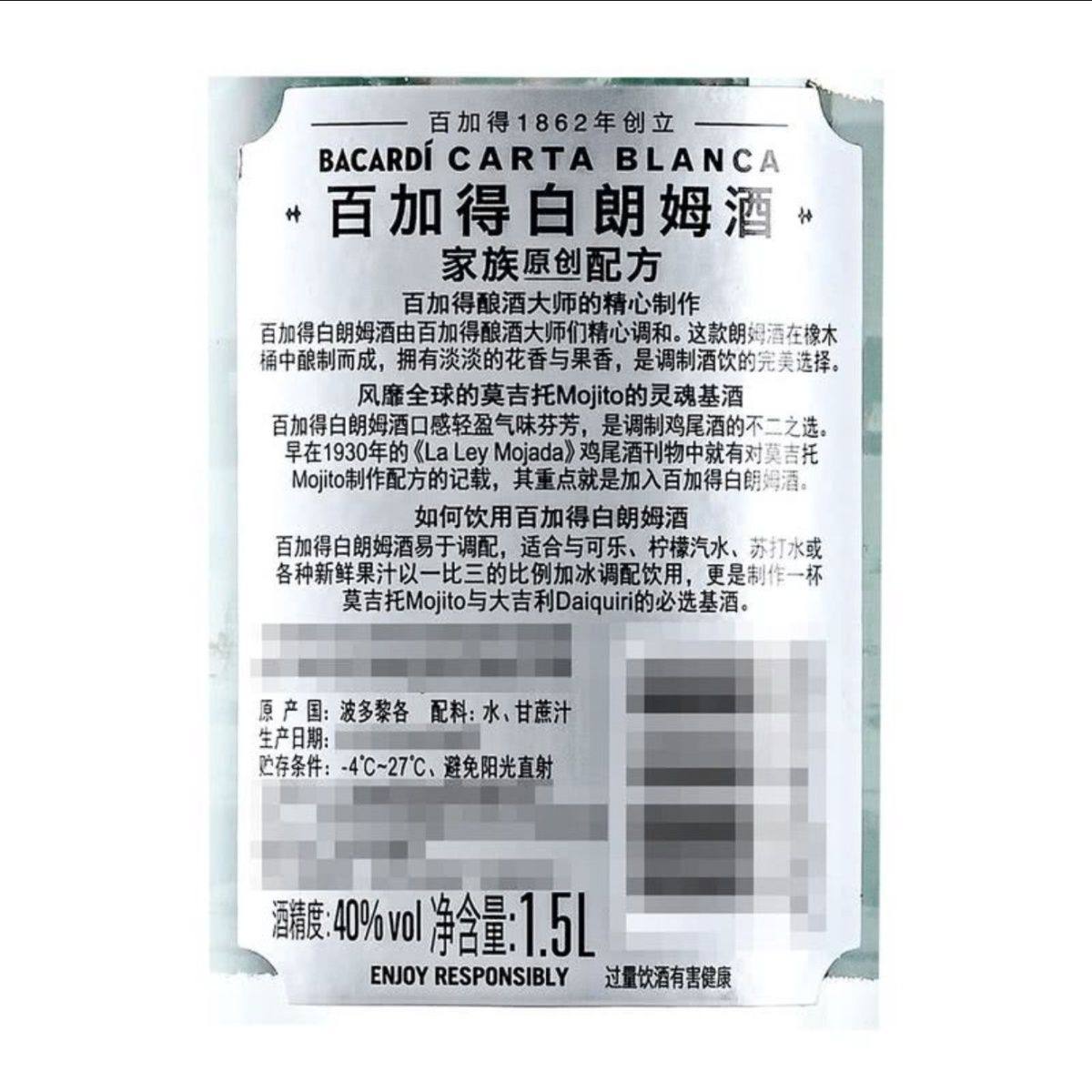 📚 开市客代购 BACARDI百加得白朗姆酒1.5L 鸡尾酒mojito莫吉托洋酒