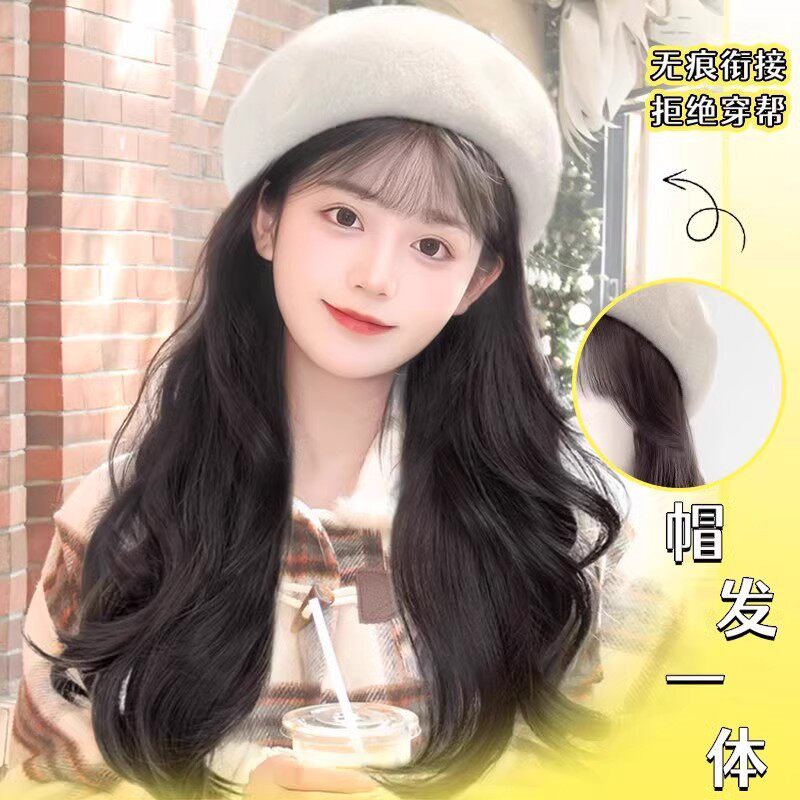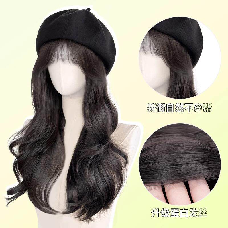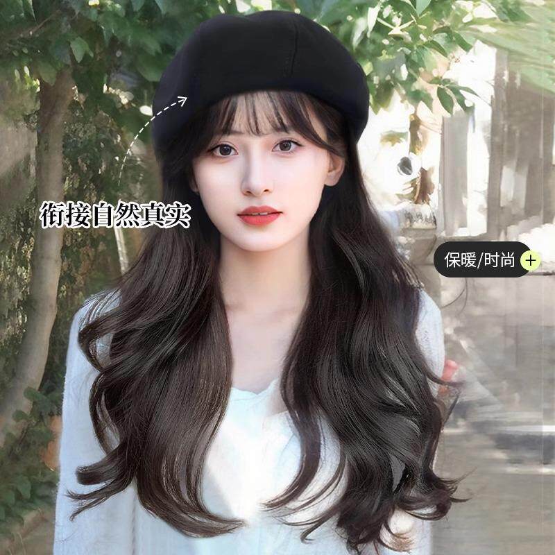 📚 假发帽子一体2025新款贝雷帽大头围显脸小时髦洋气秋冬高级感卷发