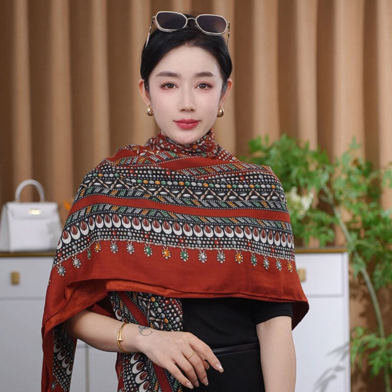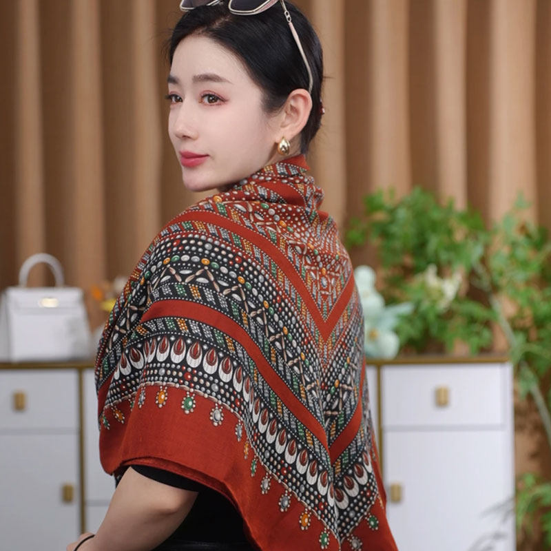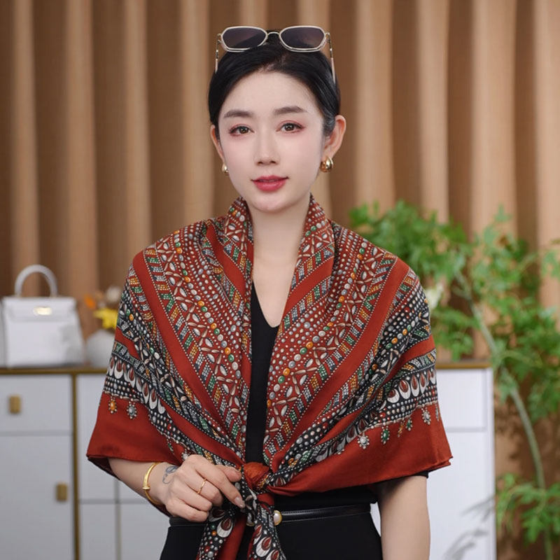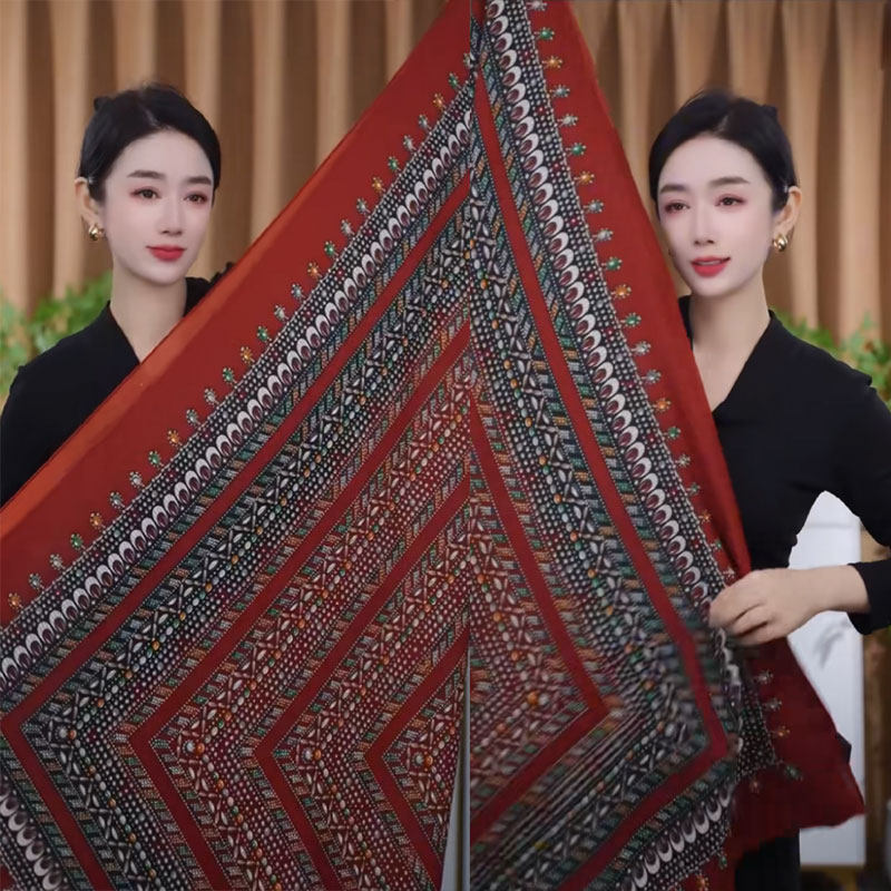 📚 2026新款女士红宝石图案百搭130*130大方巾简约过年喜庆围巾披肩