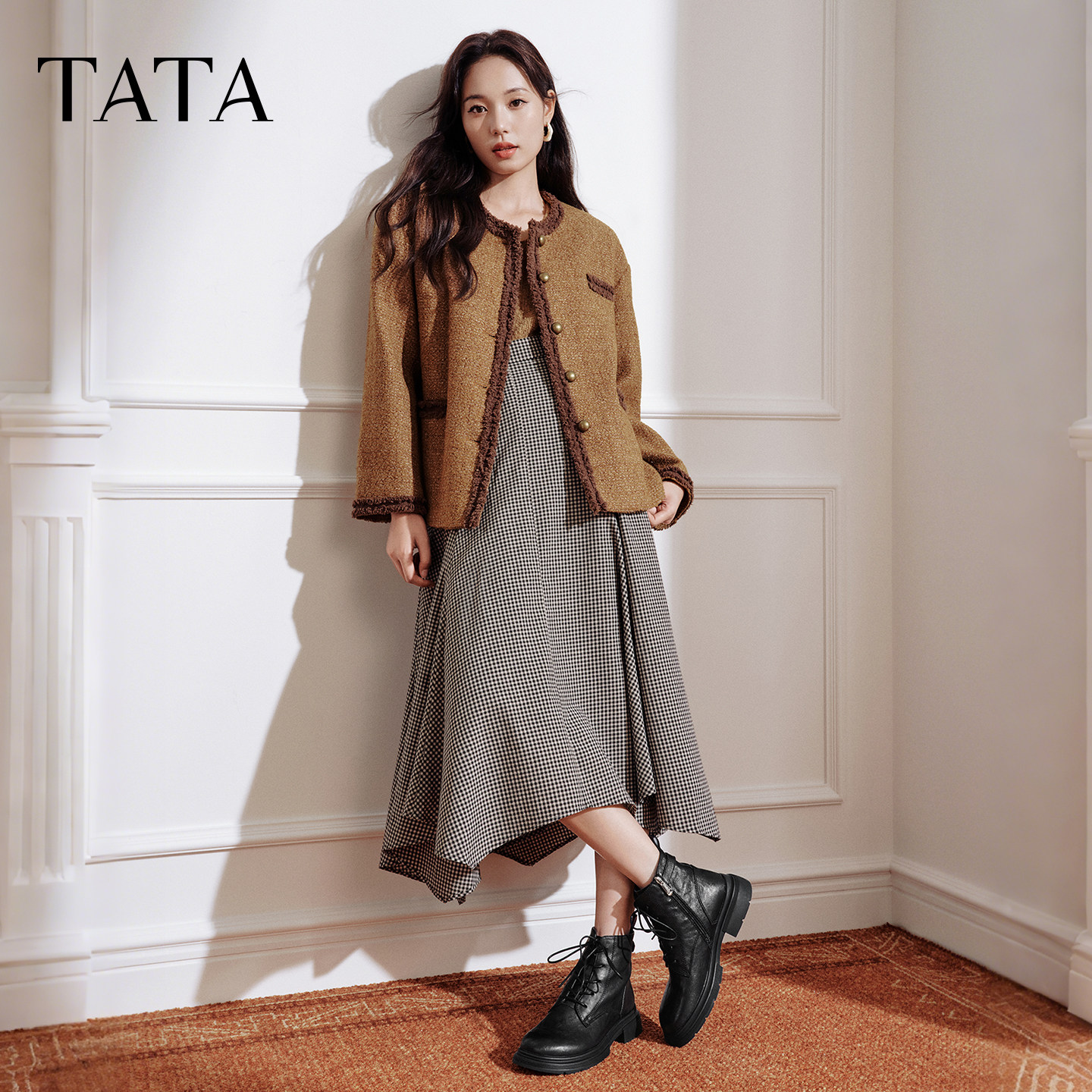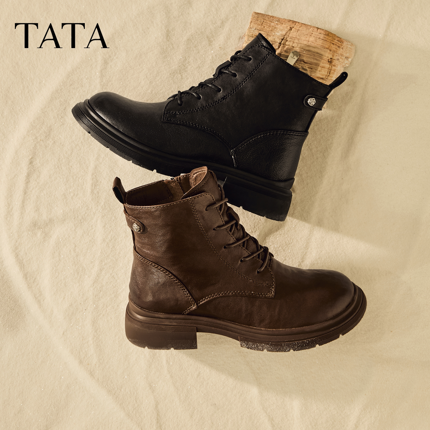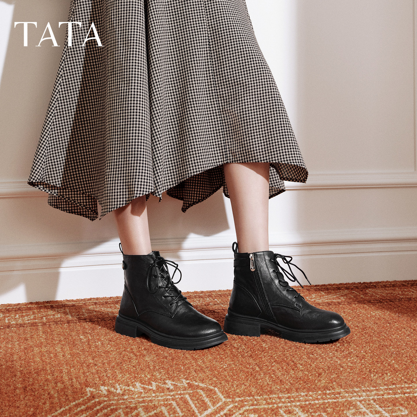📚 TATA他她靴子女羊皮秋冬款英伦工装靴厚底马丁靴真皮短靴WXB06DD5