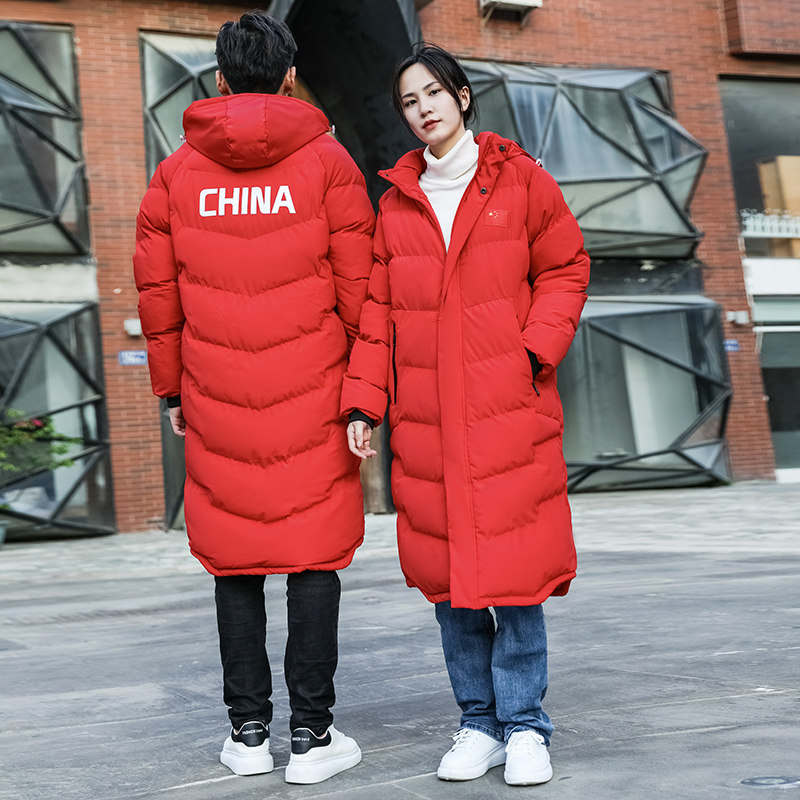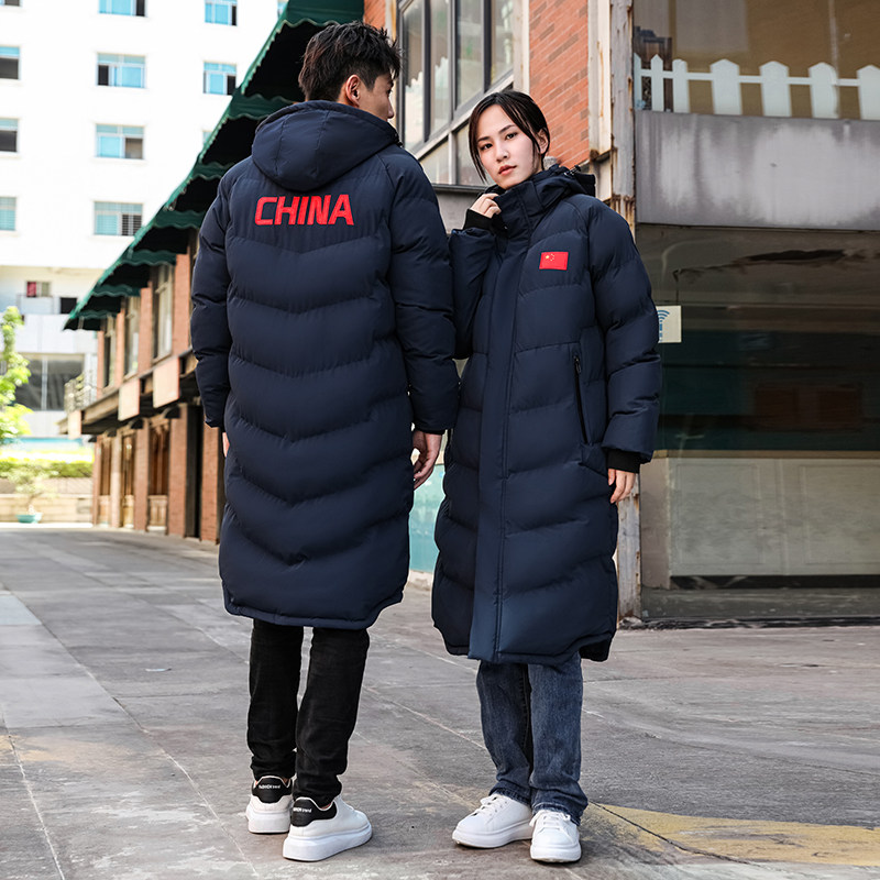 📚 中国国家队冬训加绒长款过膝运动员棉大衣男冬季体院训练羽绒棉服