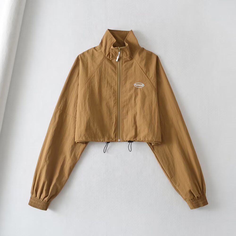 📚 欧美女装立领长袖纯色拉链短款棒球服夹克外套上衣学生衫开衫外衣