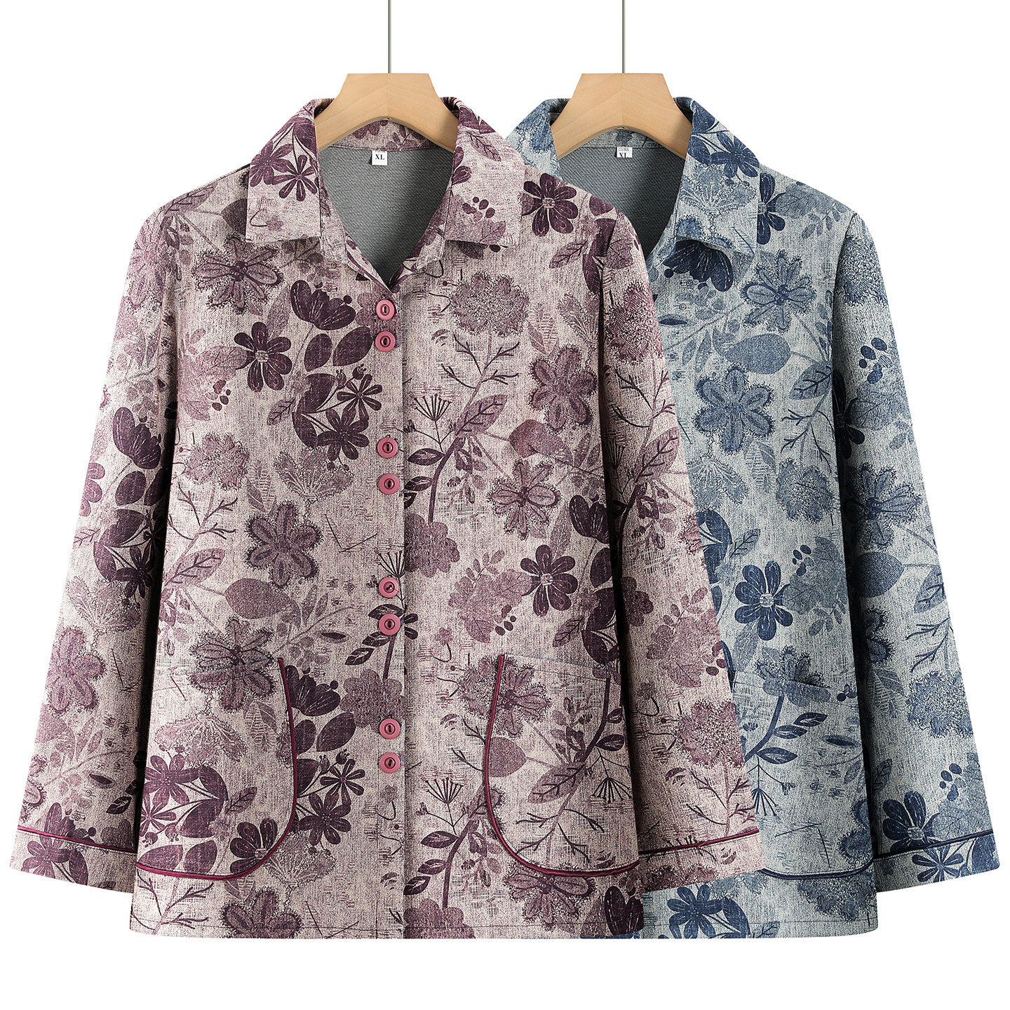 📚 中老年人秋装女薄款外套奶奶春秋款长袖衬衫妈妈衣服60岁70老太太