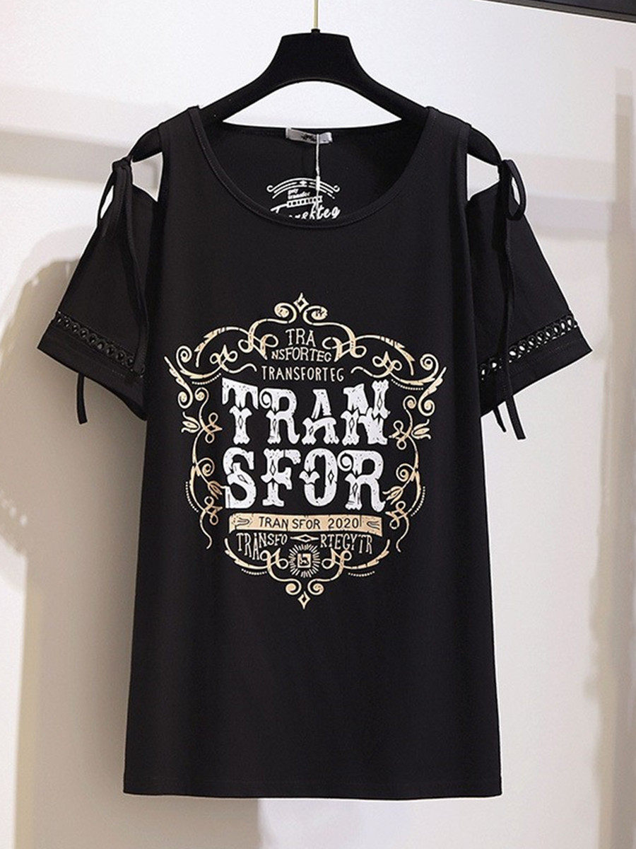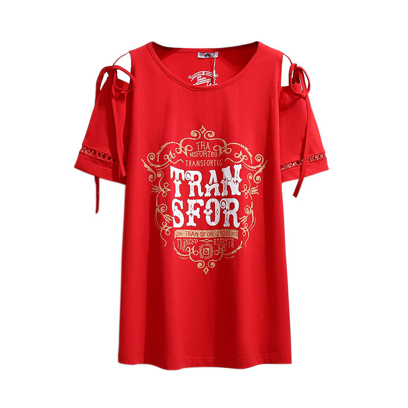 📚 2024夏装特大码露肩短袖T恤女韩版300斤胖mm宽松显瘦时尚休闲上衣