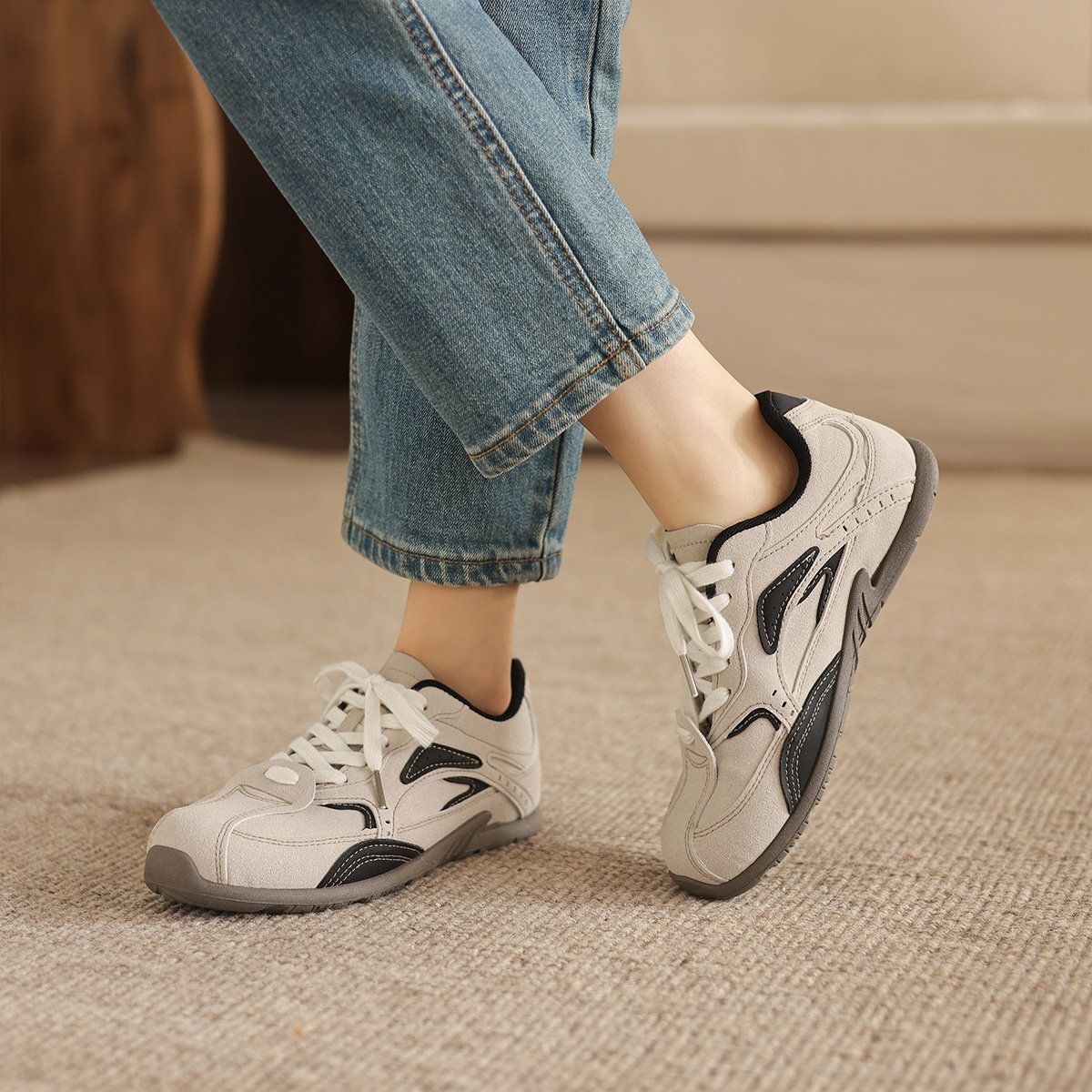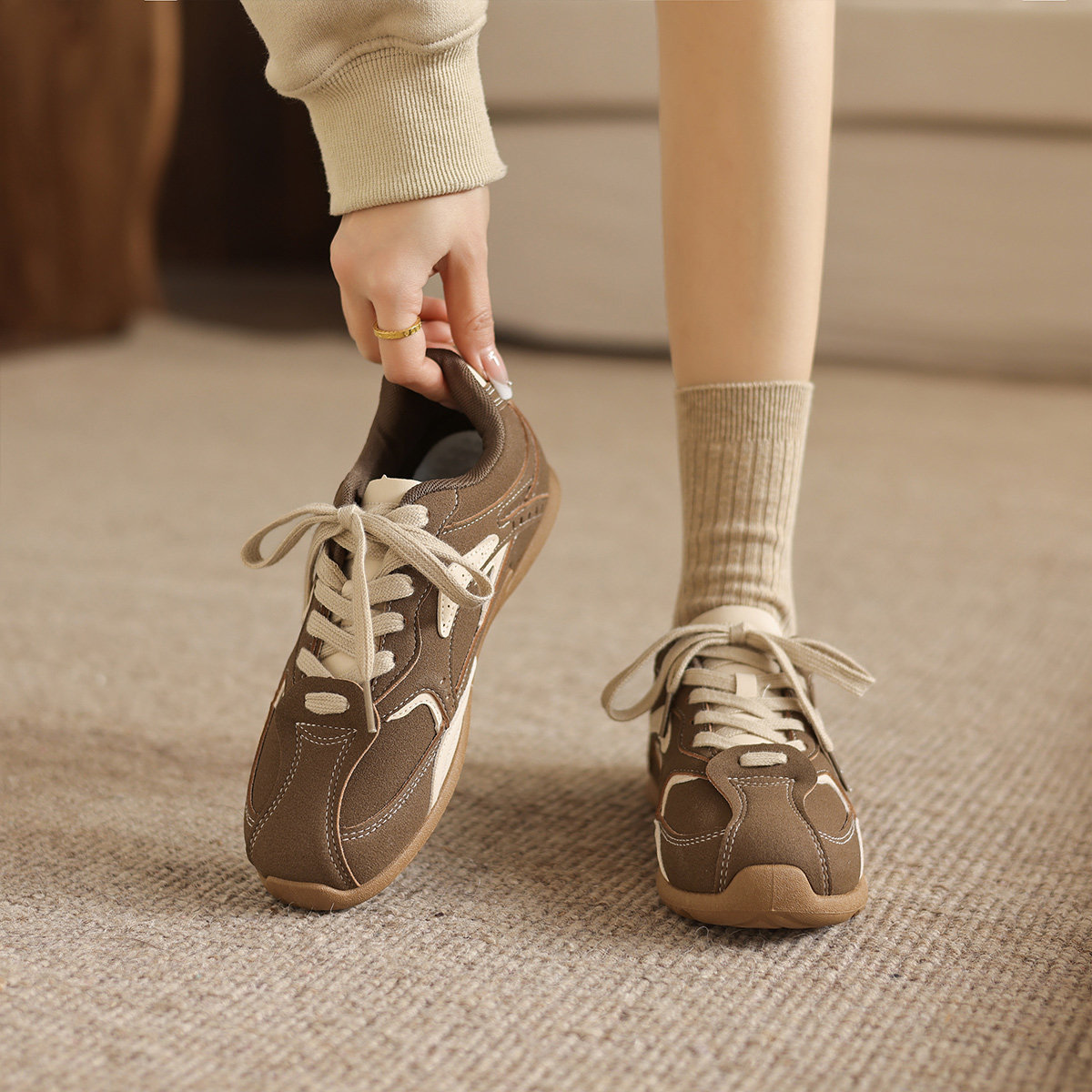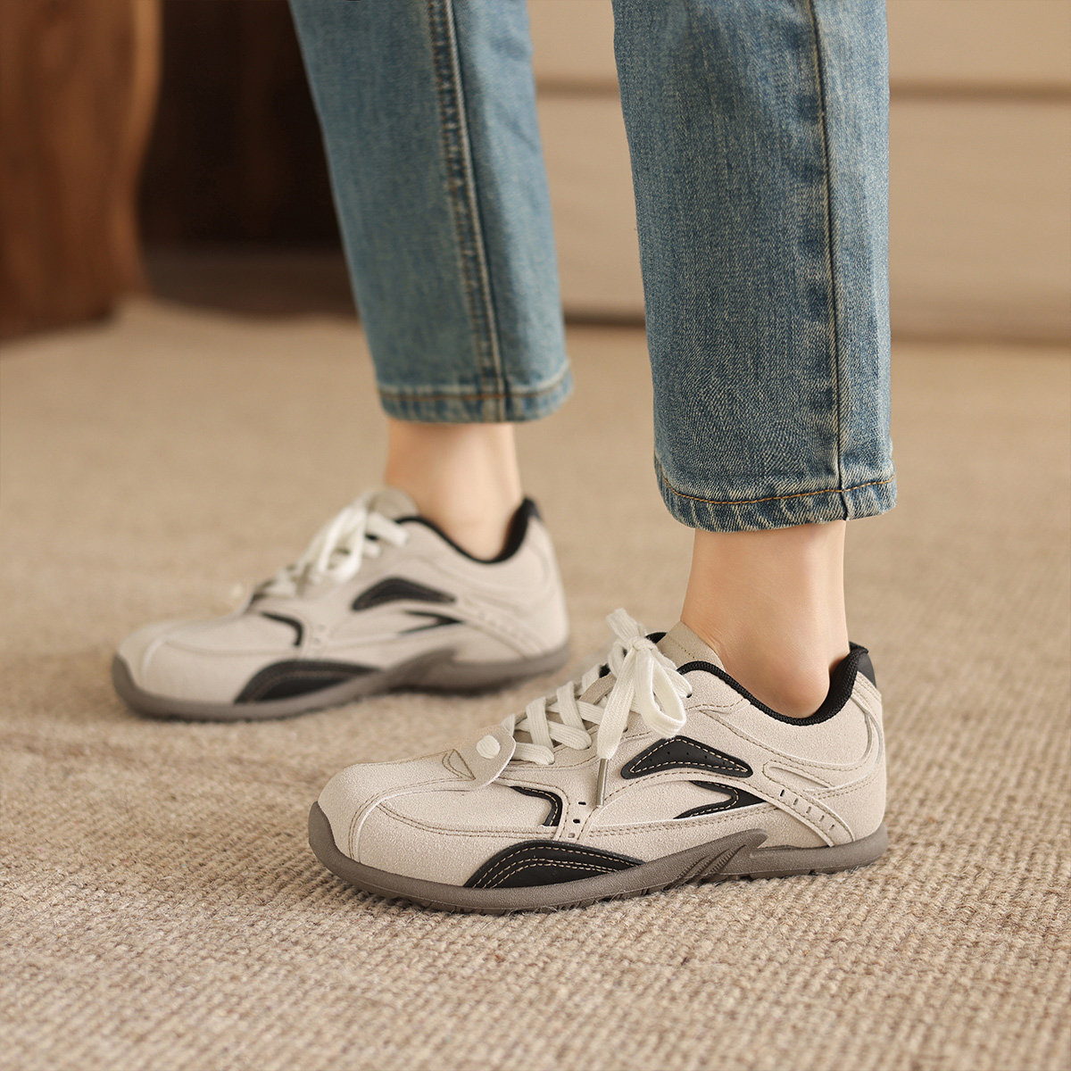 📚 阿么手工女鞋复古德训鞋女款2026新款潮流百搭平底系带休闲阿甘鞋