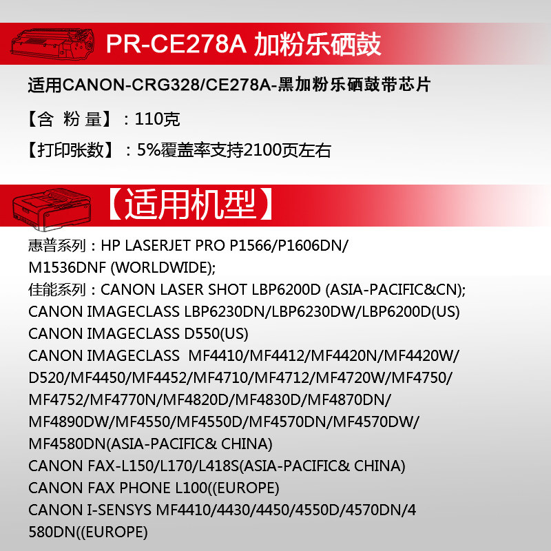 📚 天威易加粉CE278A硒鼓 适用hp1560 hp1566惠普p1606dn M1536dnf佳能328硒鼓mf4752 4712 4410 4452 4710 4450