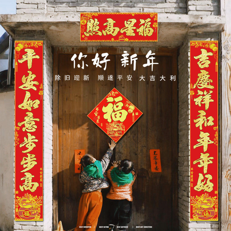 📚 对联2024龙年新款春节别墅大门家用高端创意绒布立体春联福字门贴