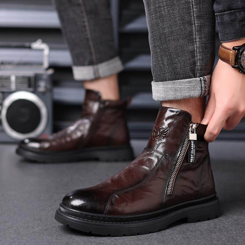 🔥冬季新宠!马丁靴男款加绒保暖羊皮透气真皮增高靴子,券后价475元,让你穿出时尚与保暖并重!