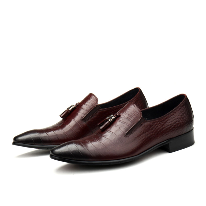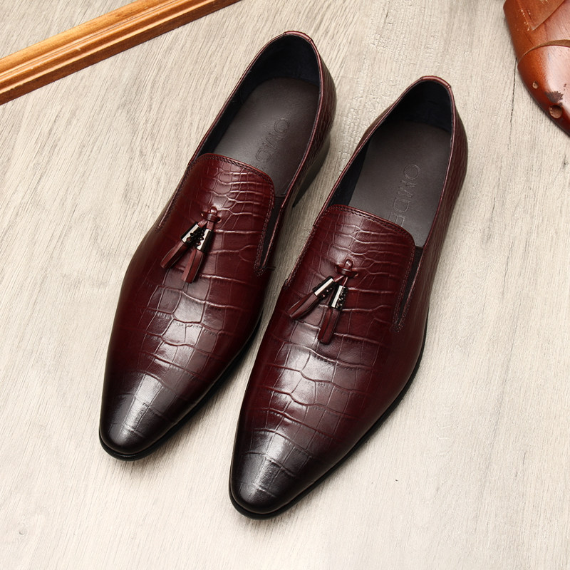 📚 压花牛皮男鞋新款英伦套脚流苏真皮透气尖头休闲皮鞋个性潮流鞋子