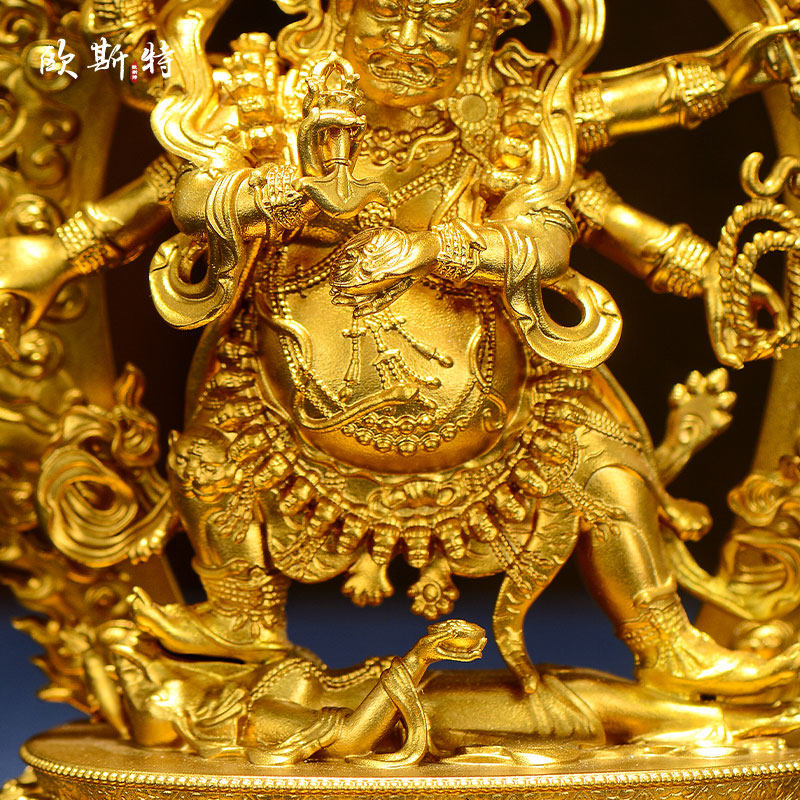 📚 欧斯特全鎏金《六臂玛哈嘎啦》室内家用《大黑天》铜像摆件
