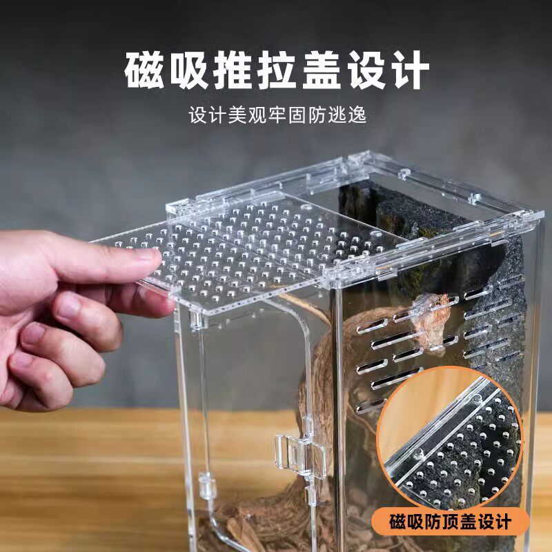 📚 爬宠鬃狮蜥养殖箱雪蛤跳蛛蜘蛛饲养盒昆虫螳螂蜗牛守宫大号亚克力