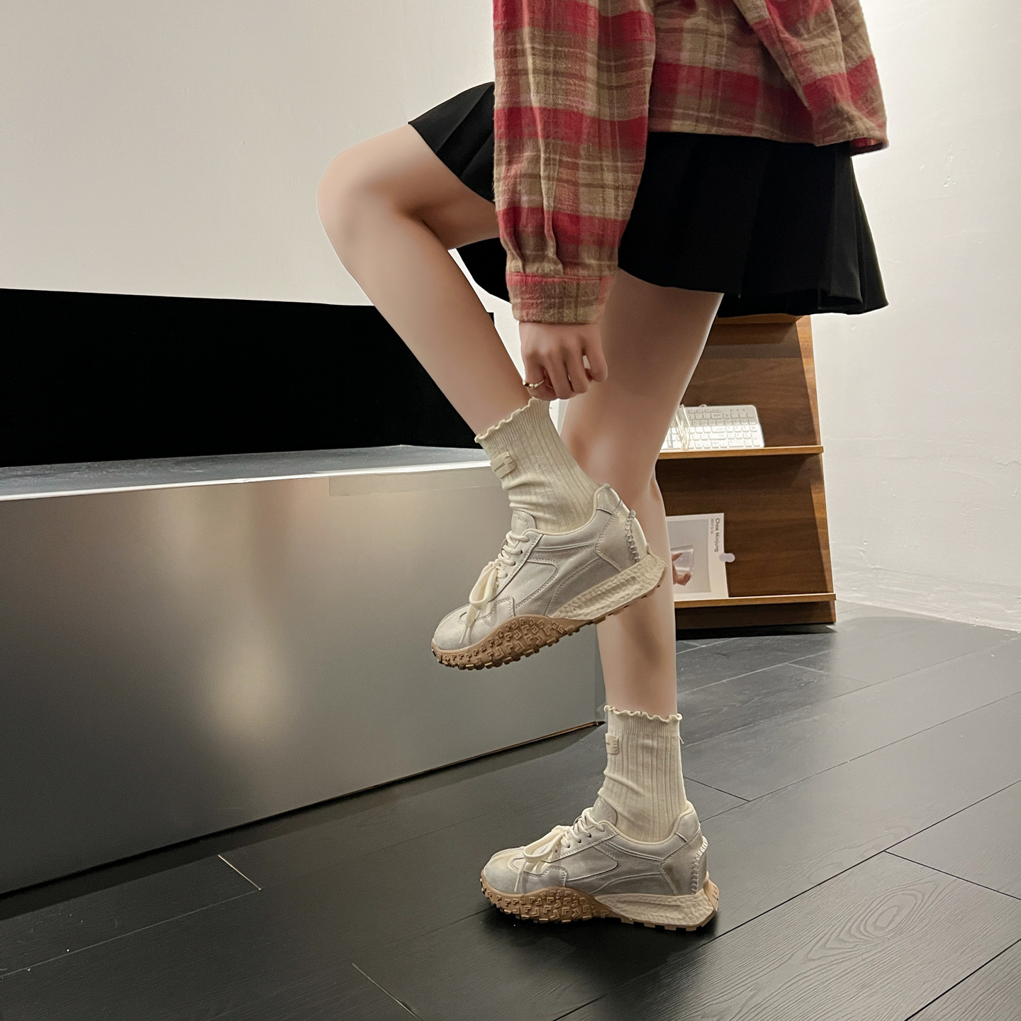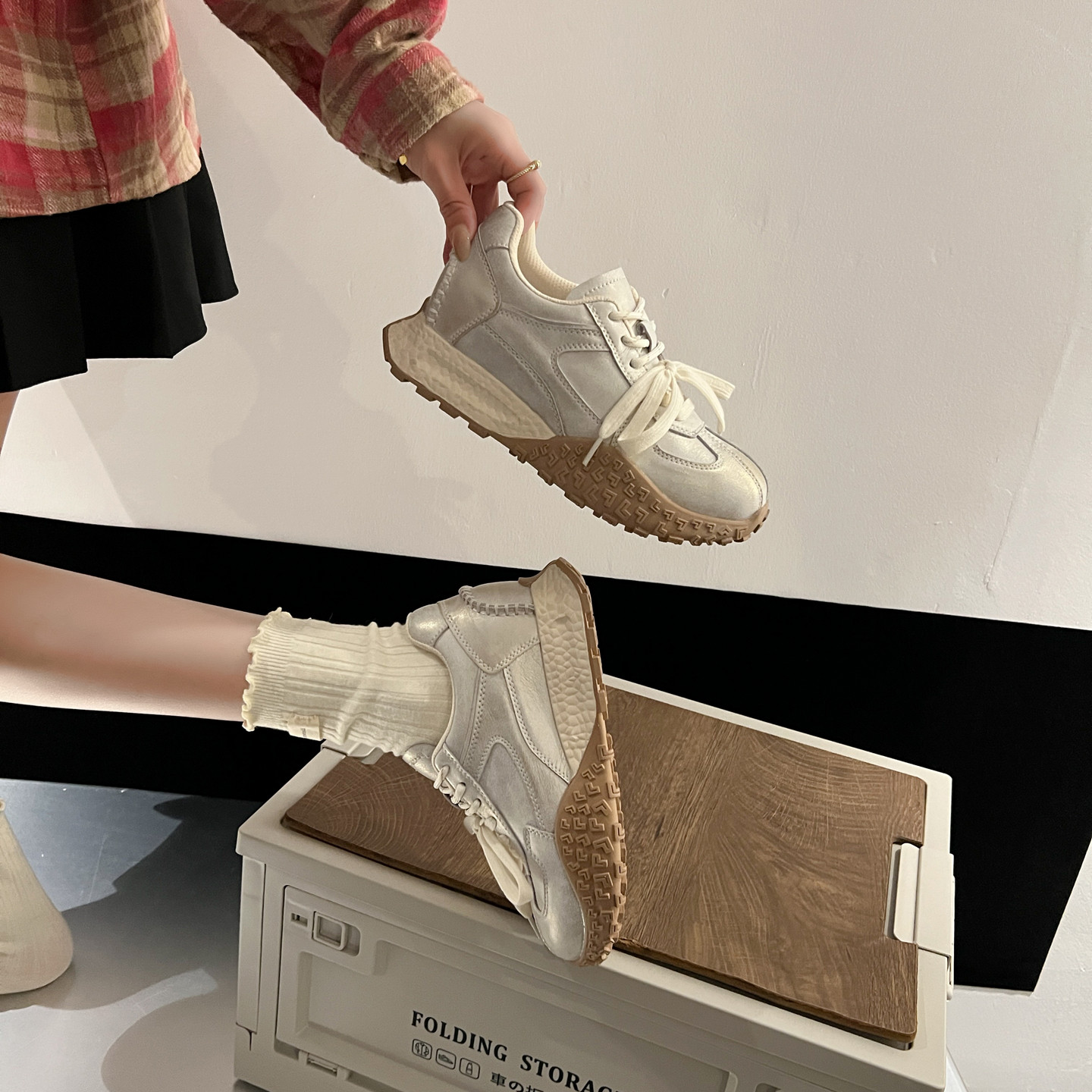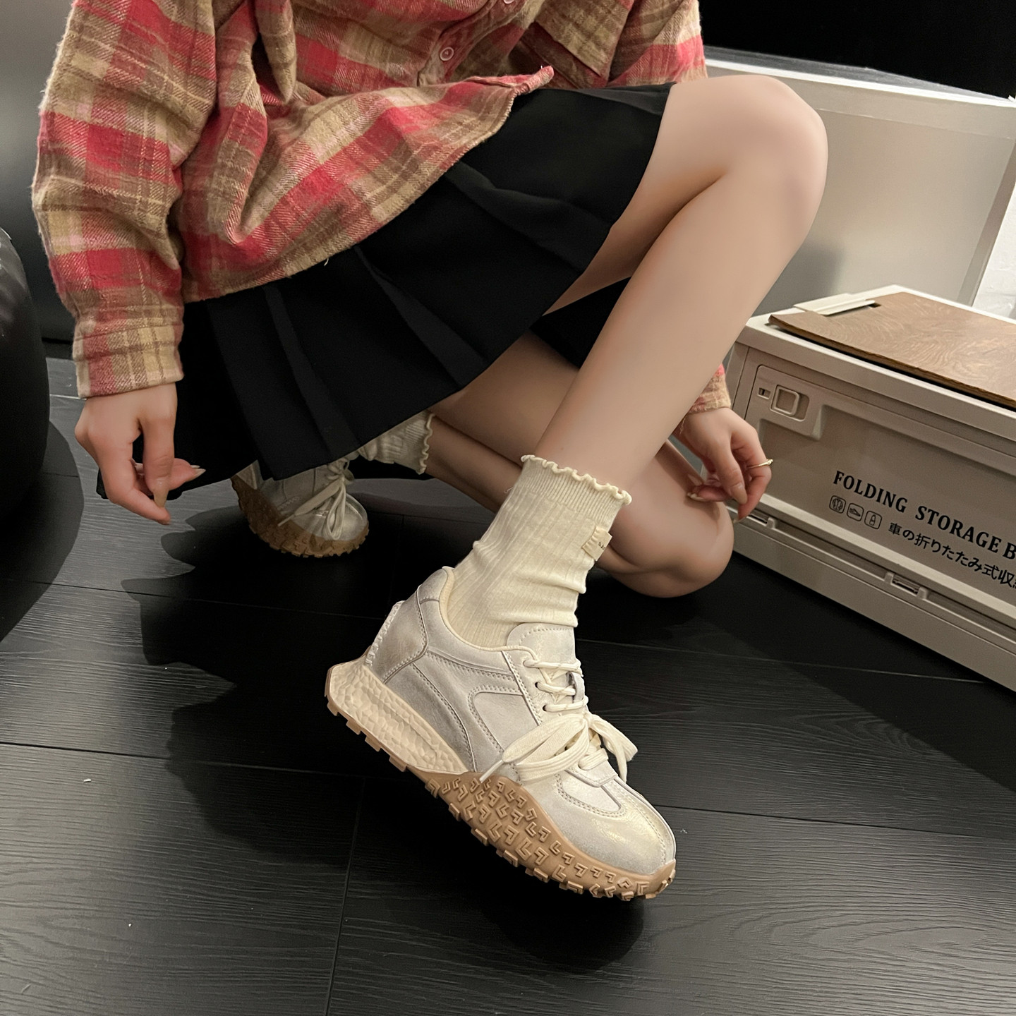 📚 真皮内增高德训鞋女2026春季新款超火小个子厚底休闲运动阿甘鞋子