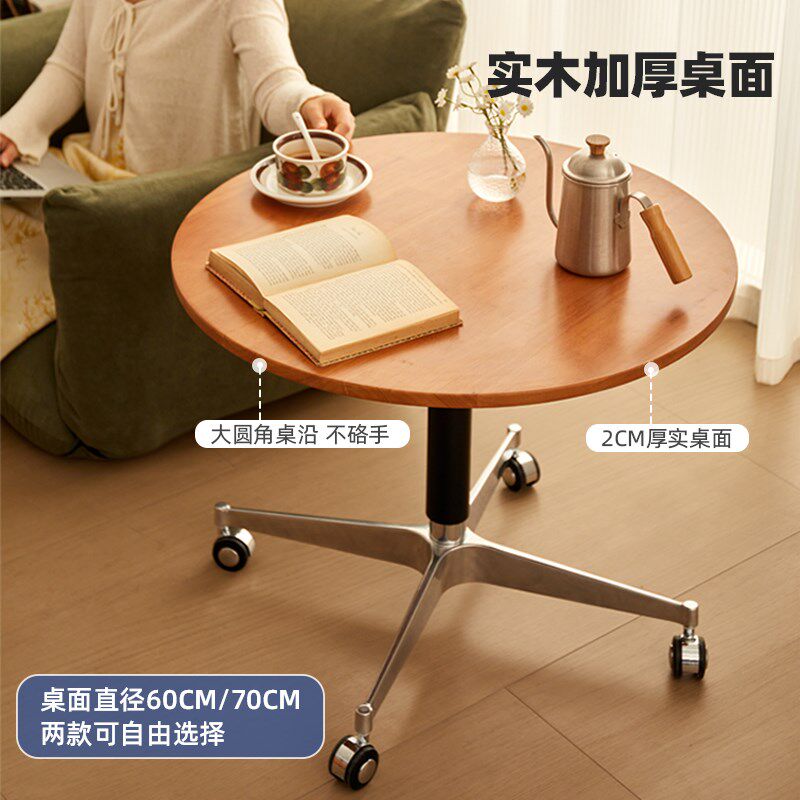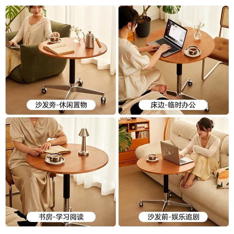 📚 实木升降边几可移动餐桌小圆桌子小户型床边桌小茶几多功能办公桌