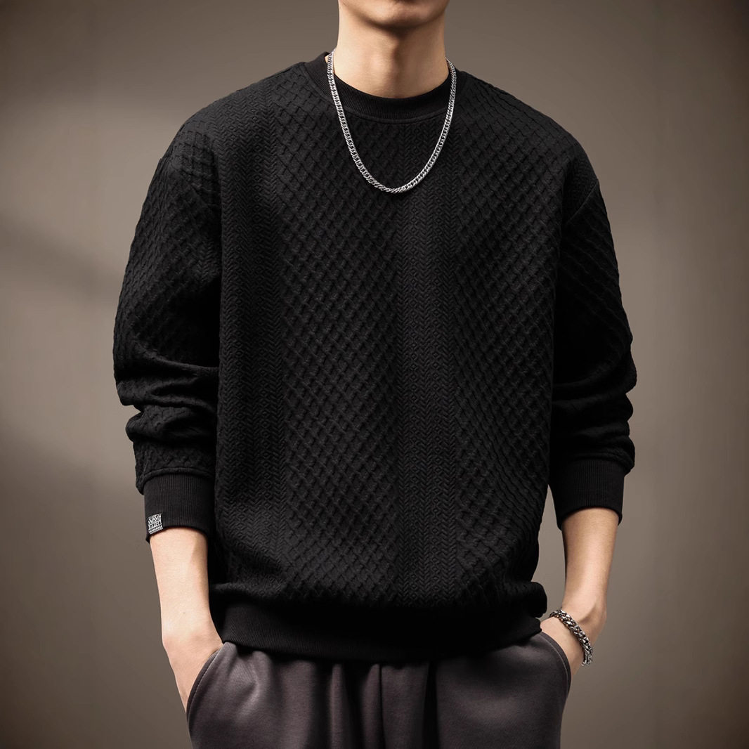 📚 高端重磅纹理感黑色卫衣男2026秋季加绒宽松大码长袖打底内搭上衣