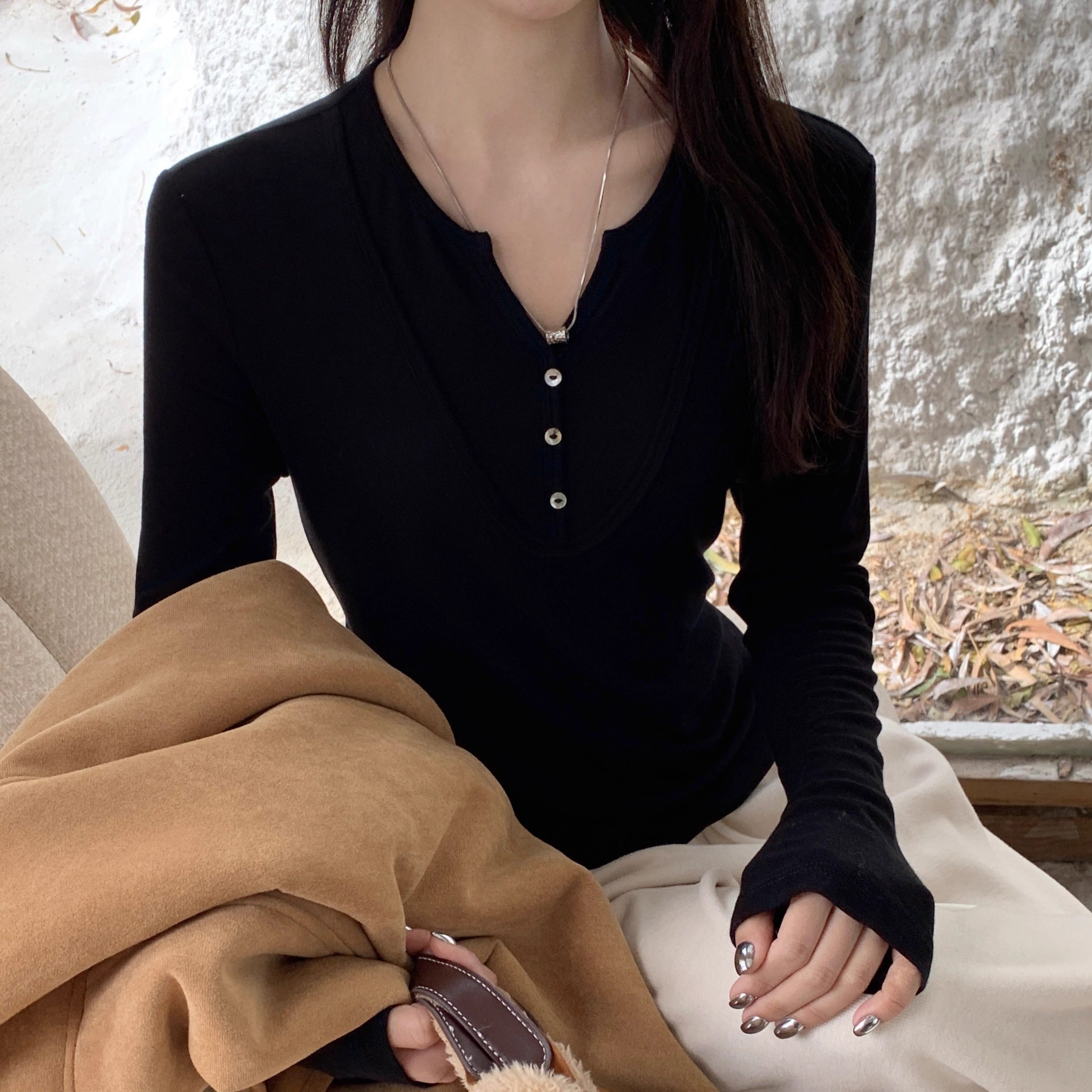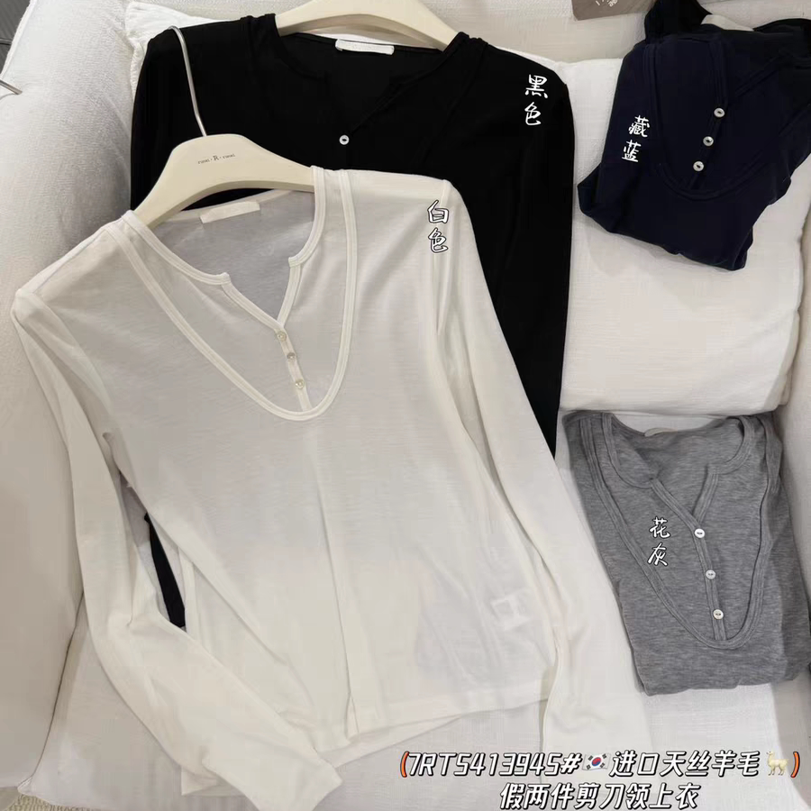 📚 闰熙CECLLIA3945-7正品剪刀口假两件天丝羊毛长袖T恤打底衫女新款