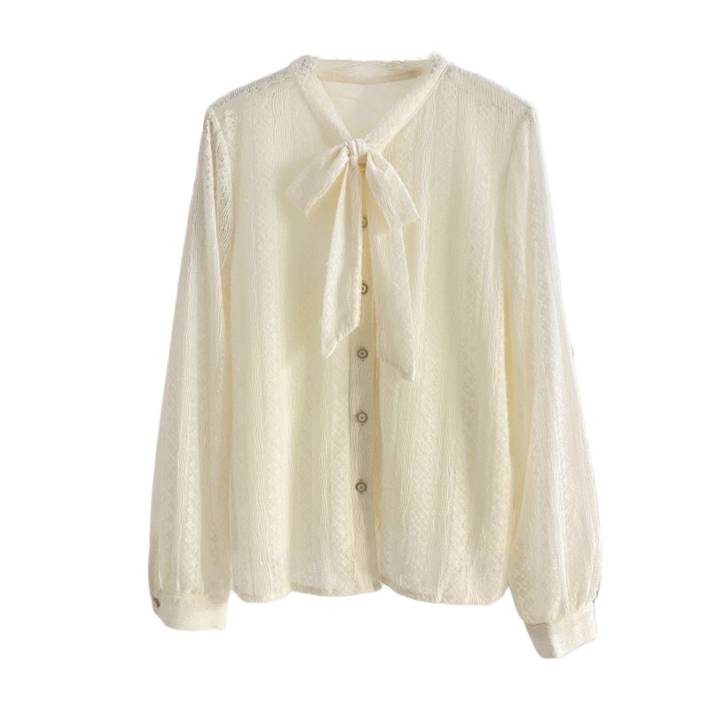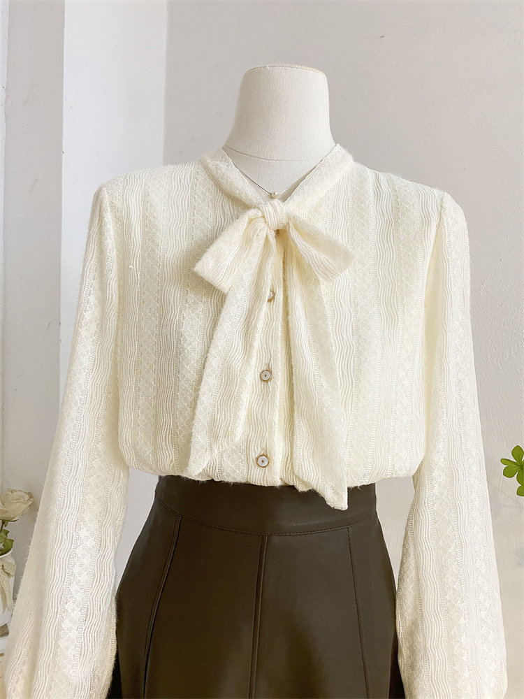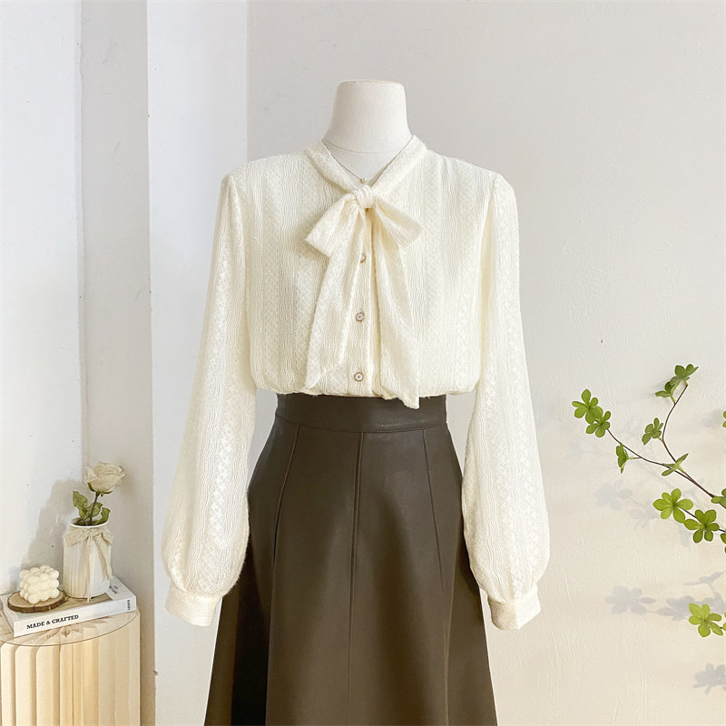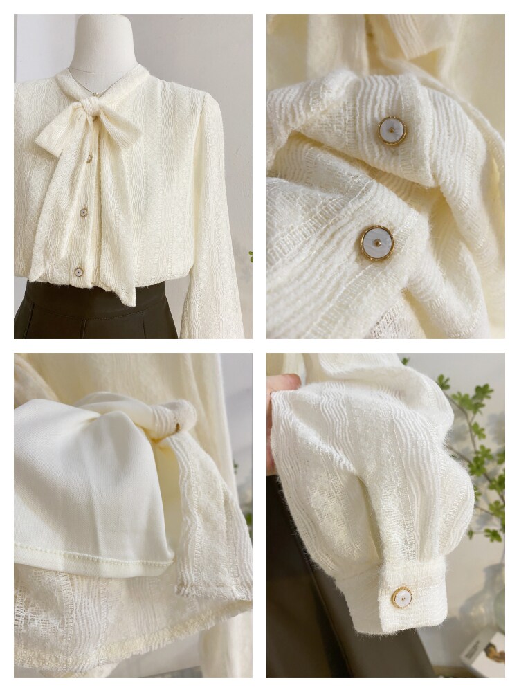📚 系带蝴蝶结蕾丝衫长袖衬衫女秋冬减龄气质内搭打底洋气小衫上衣杏