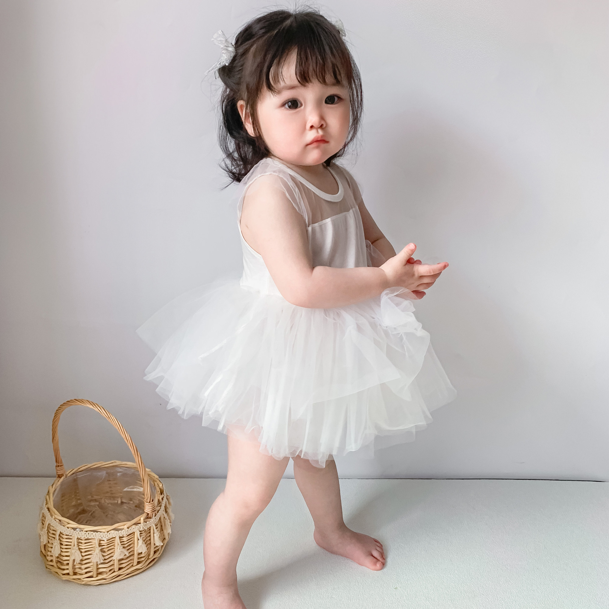 📚 女宝宝连衣裙夏装婴儿洋气网纱公主裙韩版满月百天周岁宴薄款礼服
