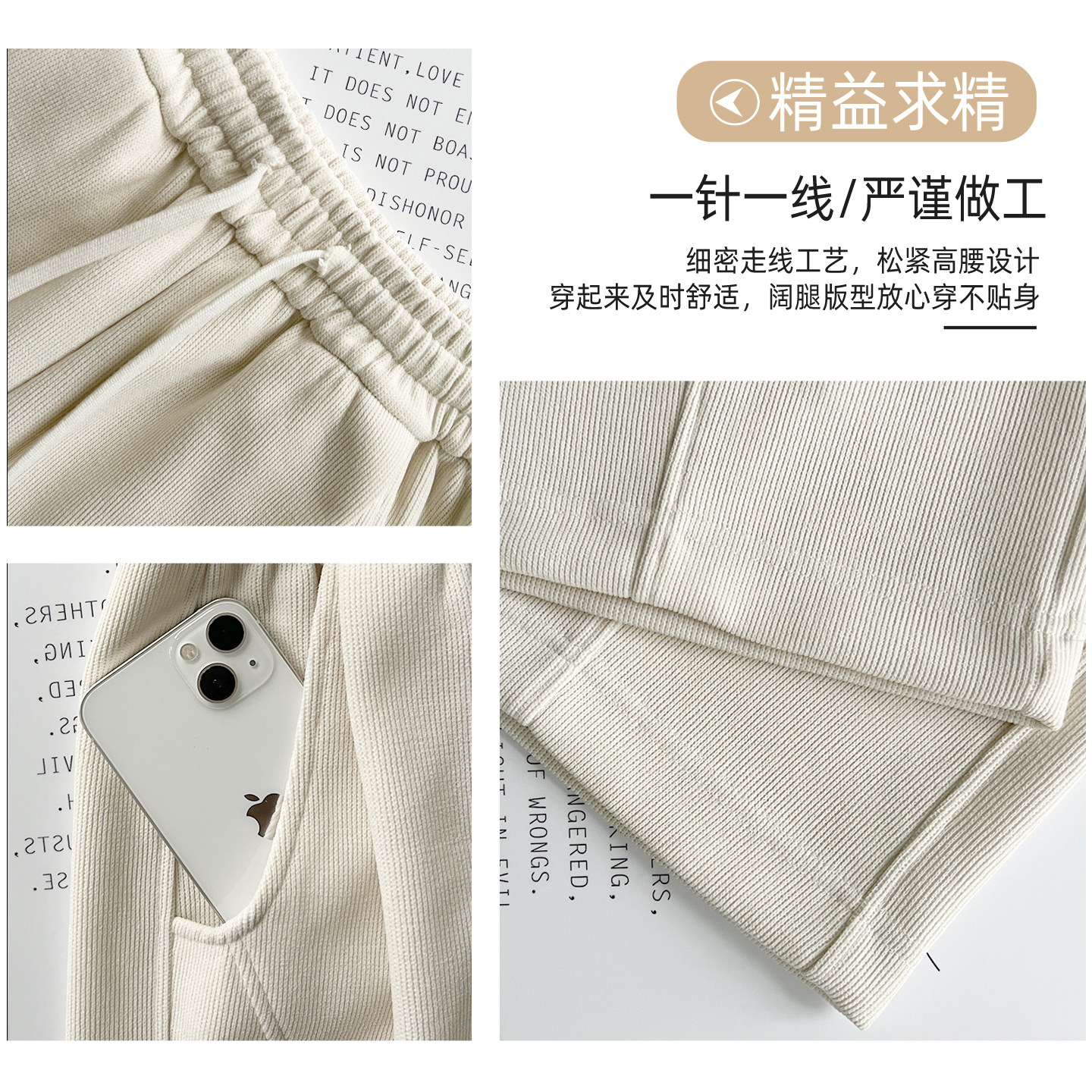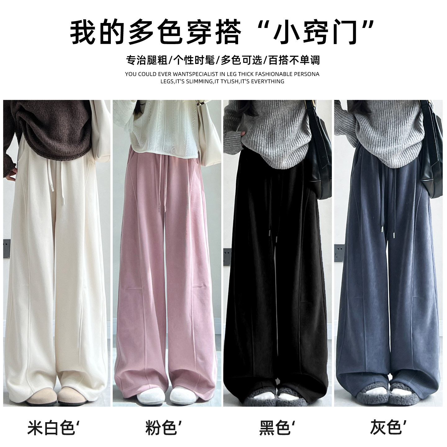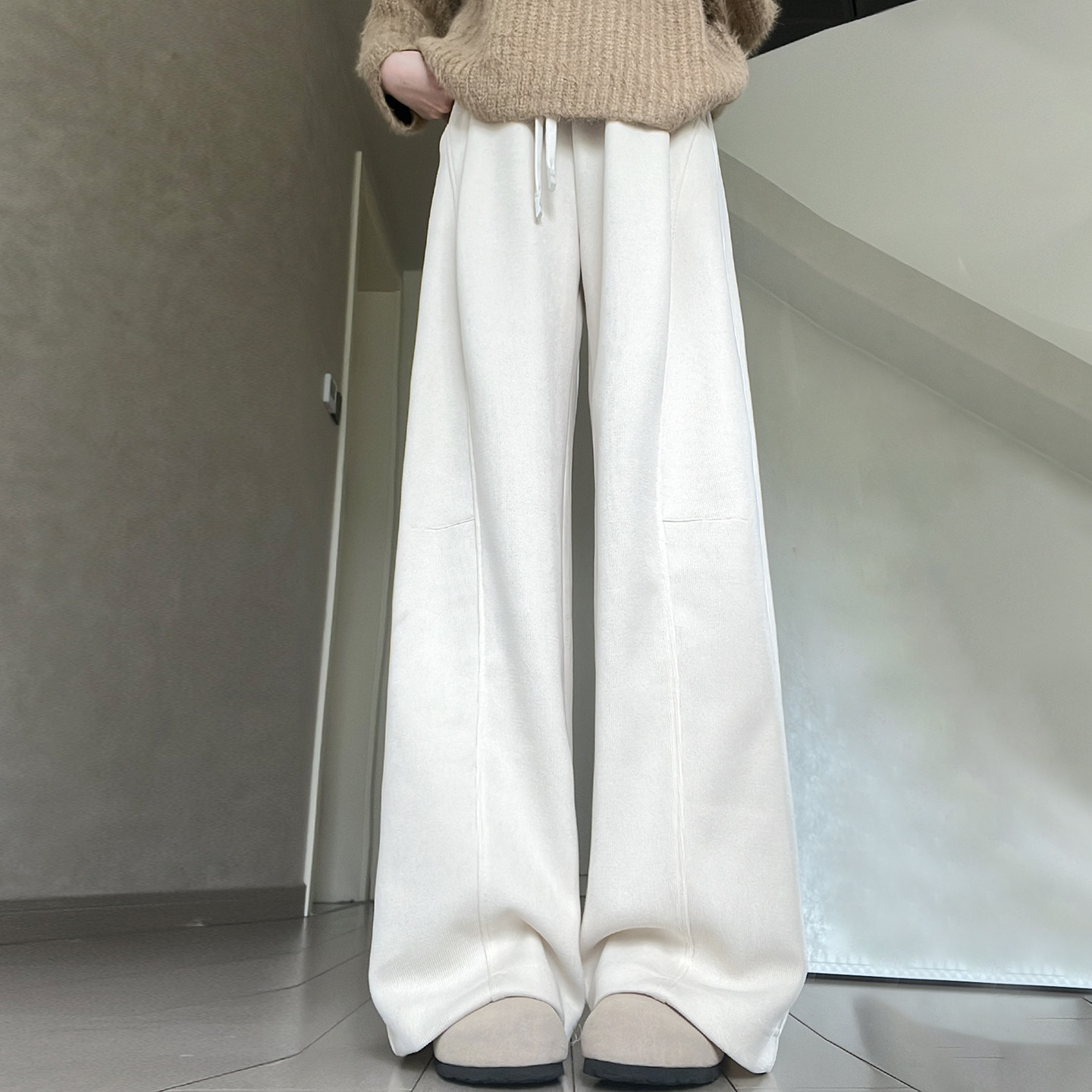 📚 大码米白色拼接弯刀运动裤女冬季胖mm卫裤小个子垂感灯芯绒阔腿裤