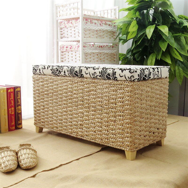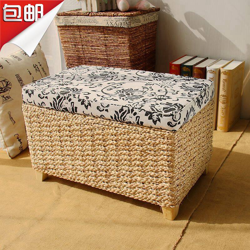 📚 门厅鞋凳可坐人藤草编收纳储物凳儿童玩具整理箱搁脚沙发凳子