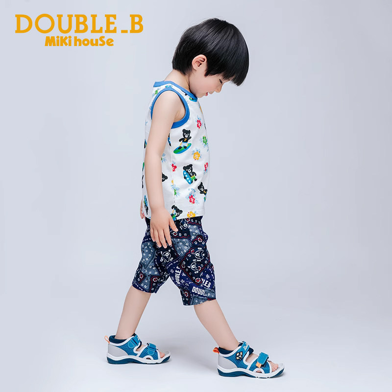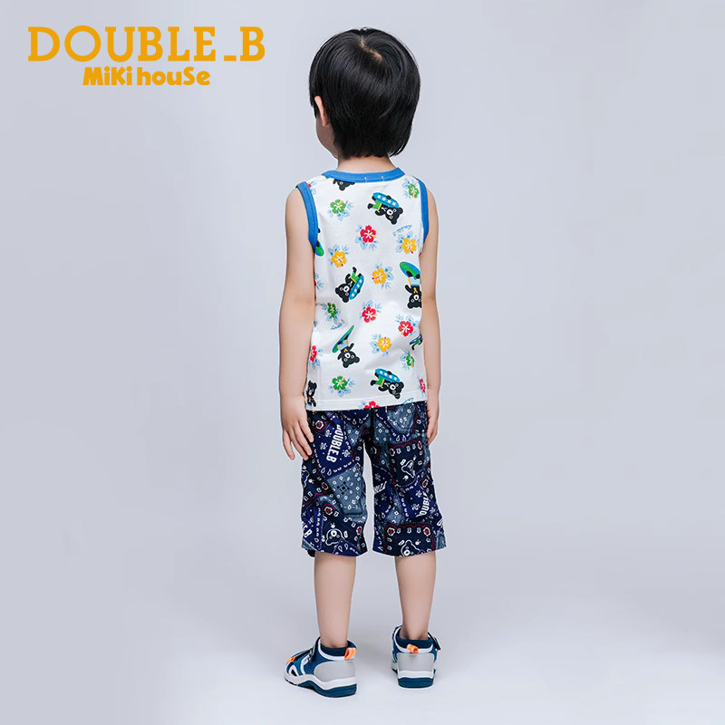📚 MIKIHOUSE男童裤子文艺纯棉6分裤海报款花纹主题拼接DoubleB
