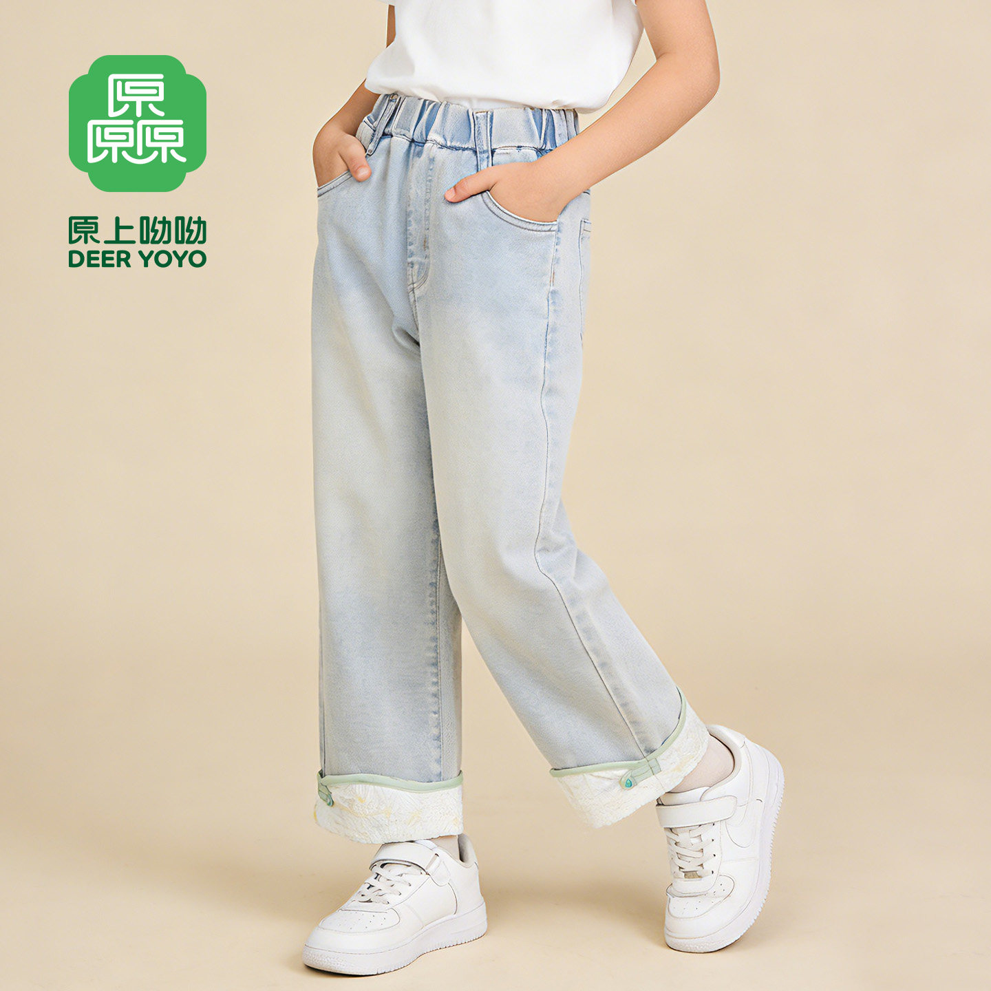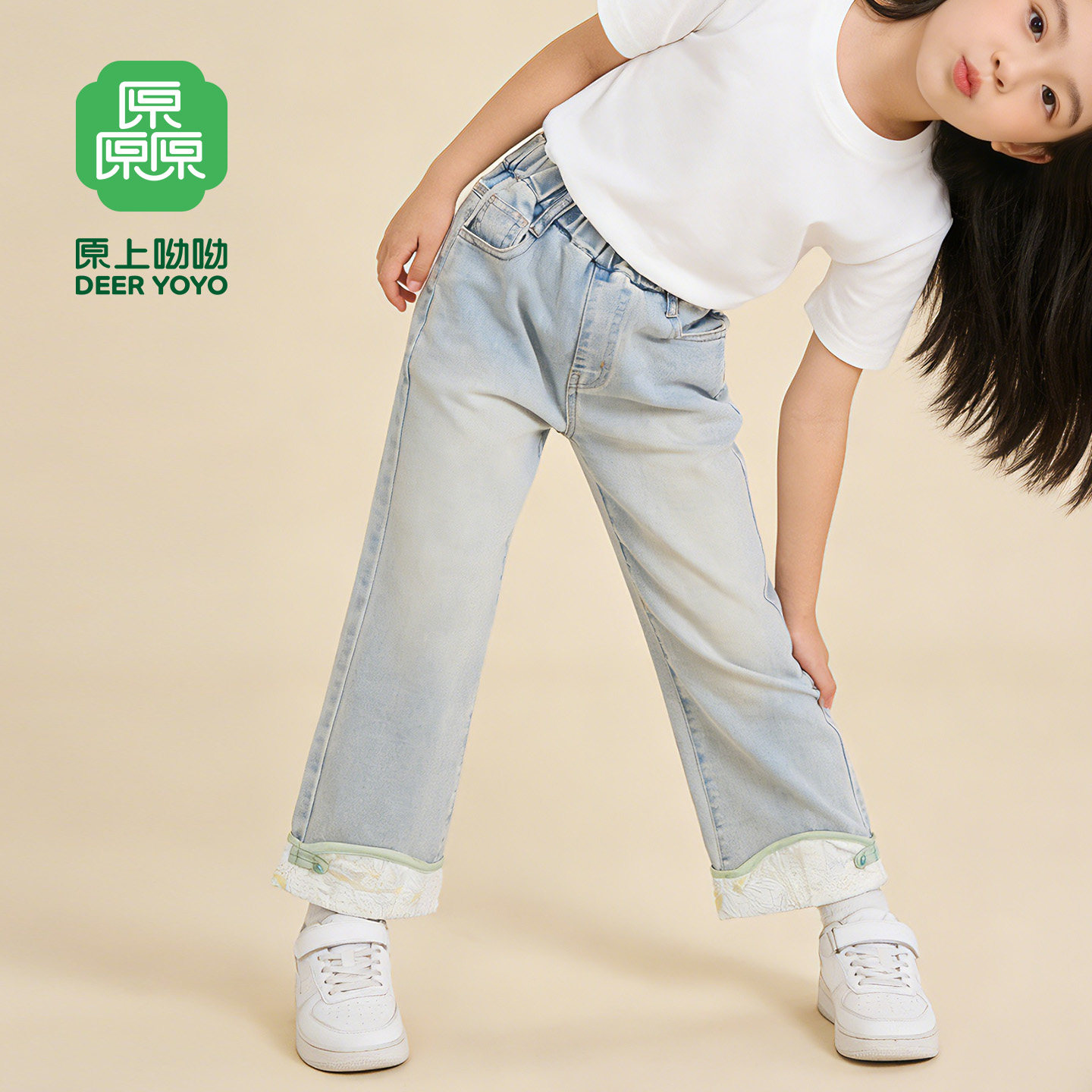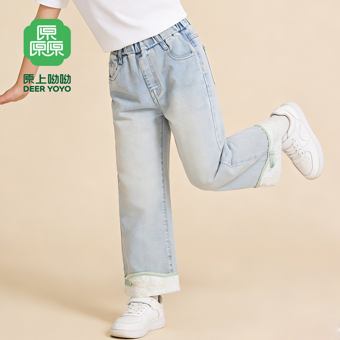 📚 原上呦呦女童国风直筒牛仔裤2026春新款儿童女宝宝盘扣新中式裤子