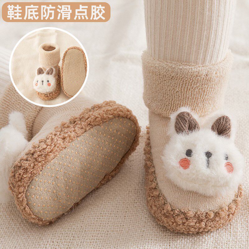📚 宝宝地板袜秋冬季学步婴儿加绒防滑软底I毛圈隔凉新生幼儿步前鞋