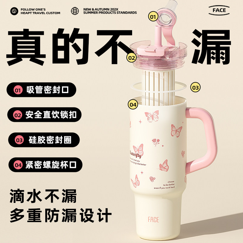 📚 face2026新款高颜值巨无霸吸管保温杯办公室车载居家大容量水杯子