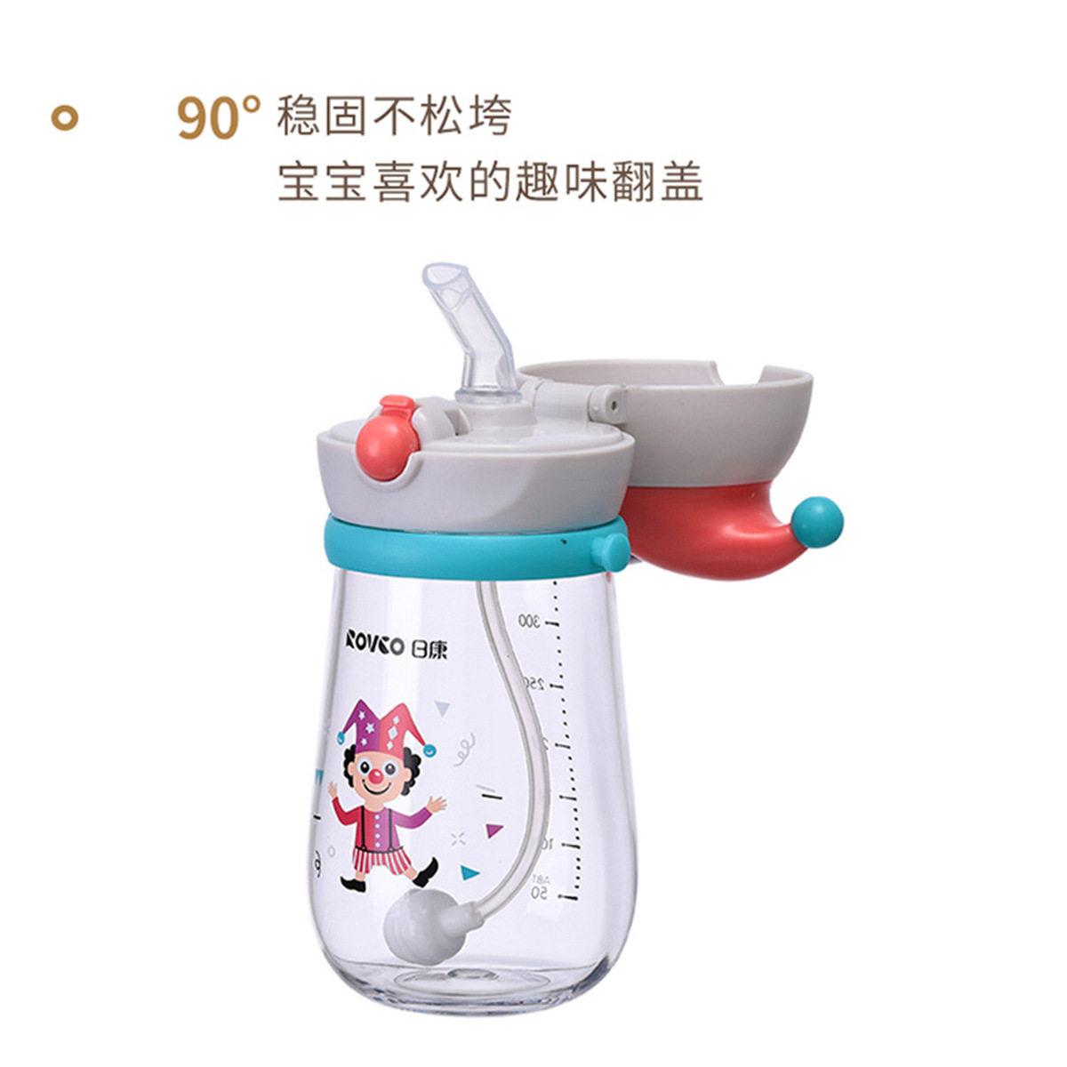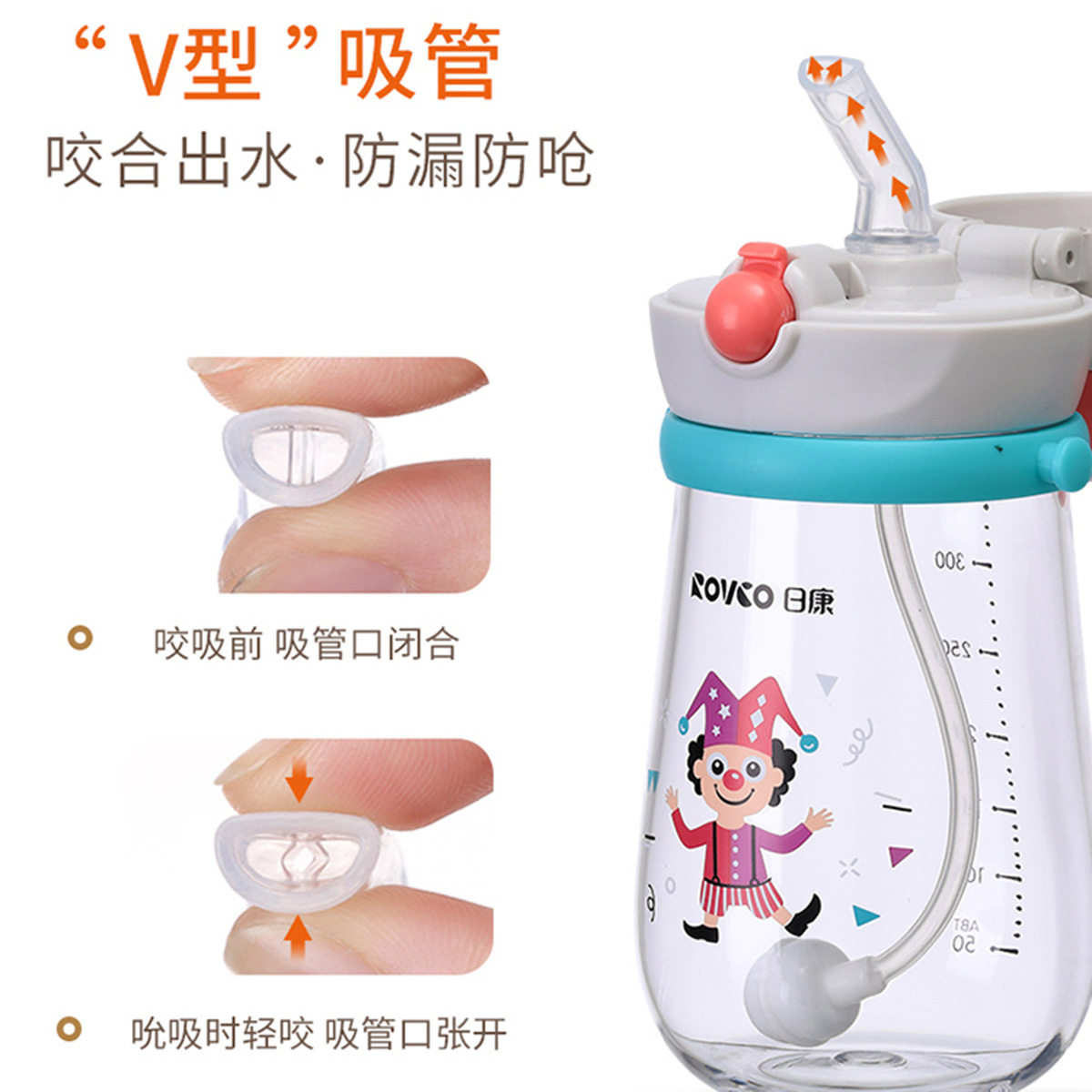 📚 ROVCO日康小丑吸管杯350ml学饮杯带背带幼儿童园水壶小学生B1033