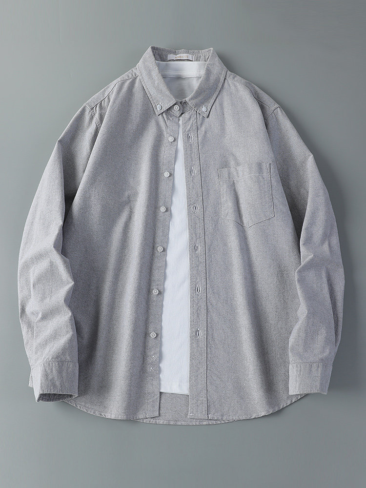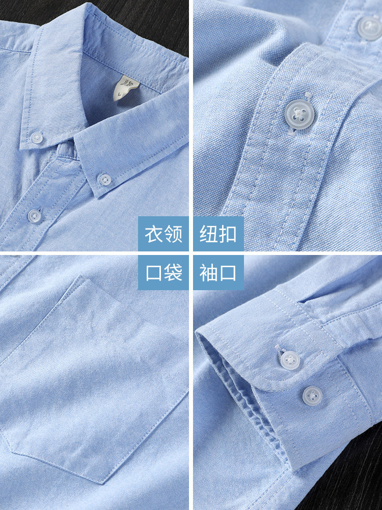 📚 2023秋冬加绒男士蓝色休闲衬衫牛津纺纯棉长袖衬衫牛仔打底外套寸